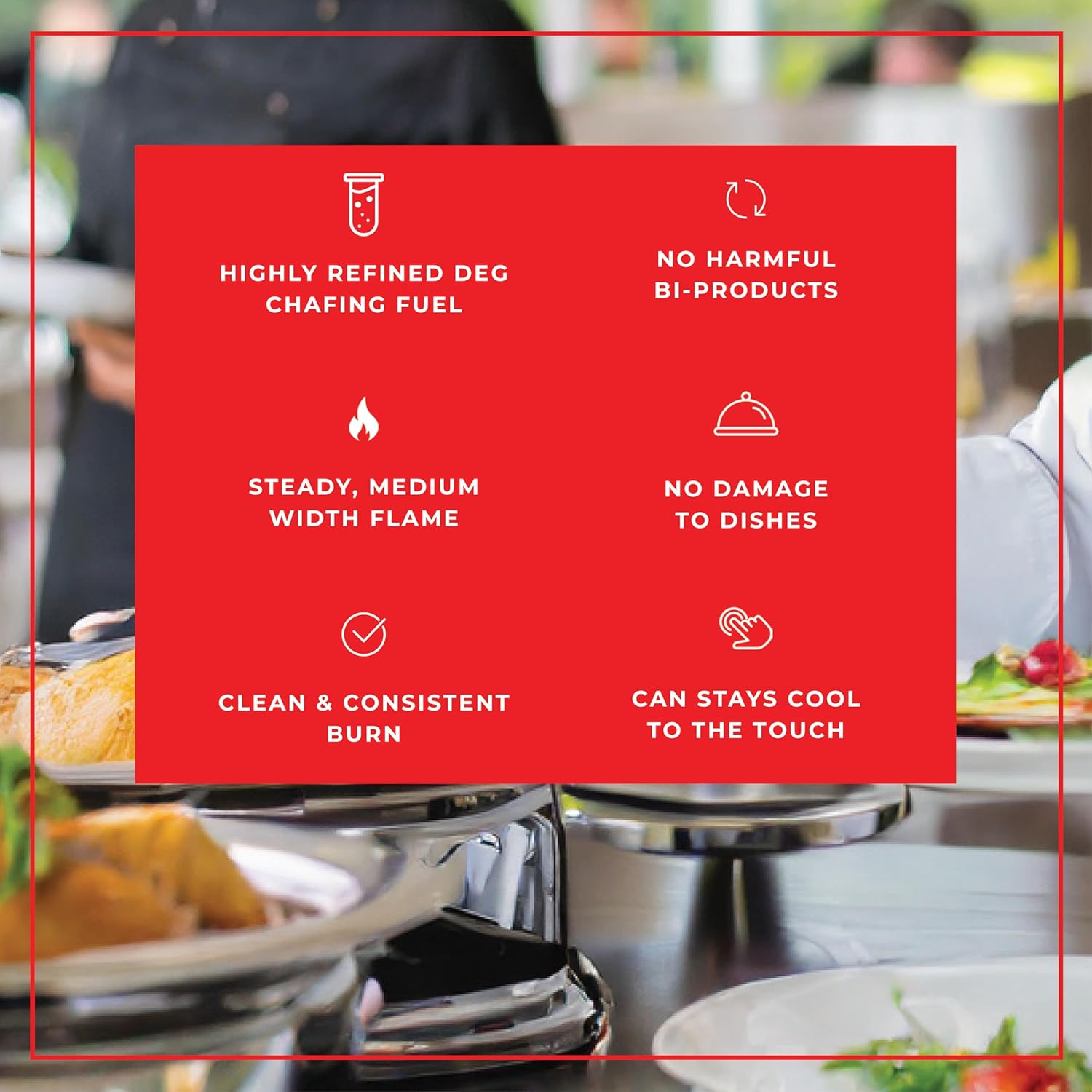 ODORLESS & SMOKELESS FOR A BETTER EXPERIENCE: Clean-burning fuel keeps food fresh and presentable, with no smoke or chemical smell—perfect for professional setups and long events.
