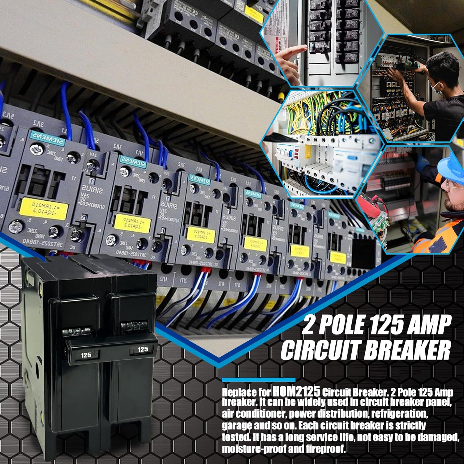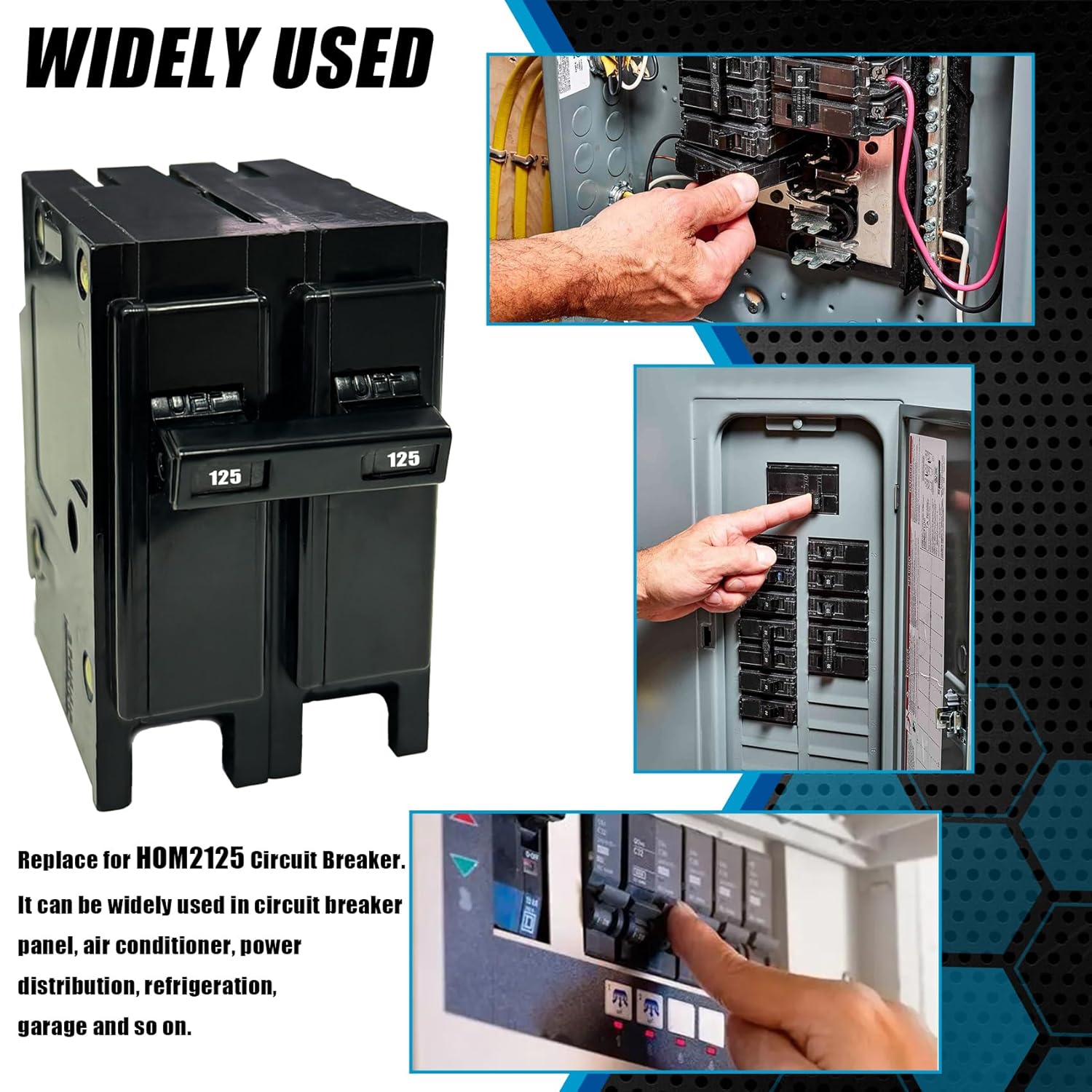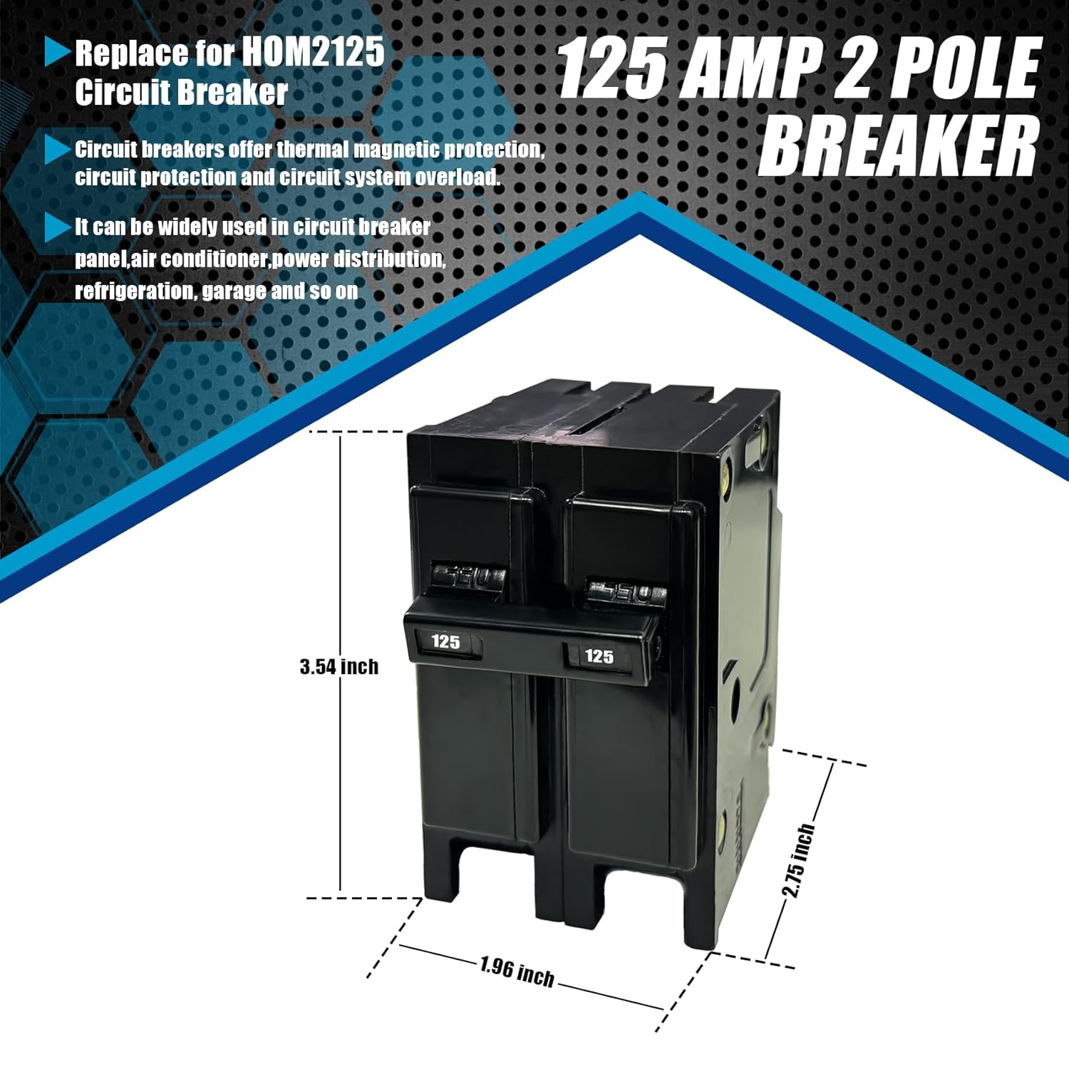 WIDELY COMPATIBLE: Replace for HOM2125 Circuit Breaker. 2 Pole 125 Amp breaker. It can be widely used in circuit breaker panel, air conditioner, power distribution, refrigeration, garage and so on. We believe this is your best choice.