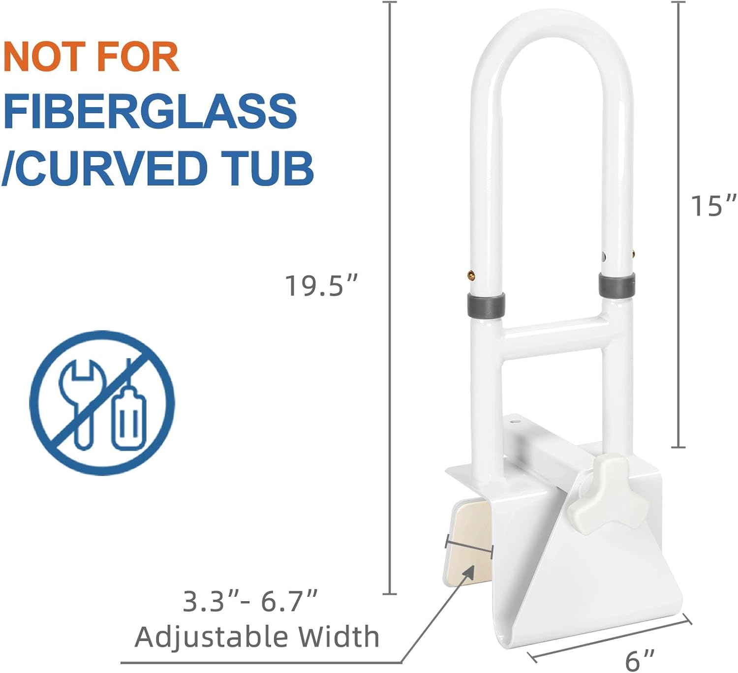 Tool-free Assembly: No more struggling with bathtub, the bathtub grab bars for seniors provide support, helps seniors get in and out of the tub safer and easier, enhances their independence. No tool is required. Attach the bathroom grab bars easily to the side of the bathtub and secure it with the lock mechanism.