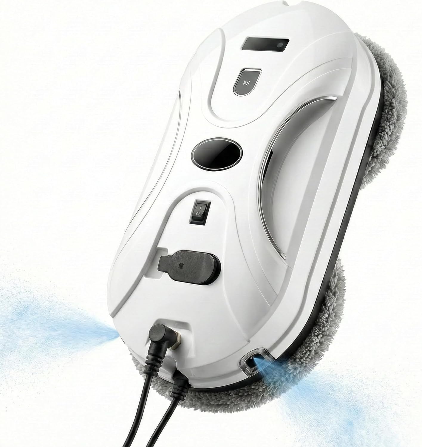 Efficient Deep Cleaning: Our window cleaner robot is equipped with dual water nozzles and double helix cleaning heads for maximum efficiency. Paired with high-quality microfiber pads, this system effectively removes dirt, dust, fingerprints, and smudges from your windows and glass surfaces. It ensures a streak-free shine and leaves your windows looking as good as new with every use