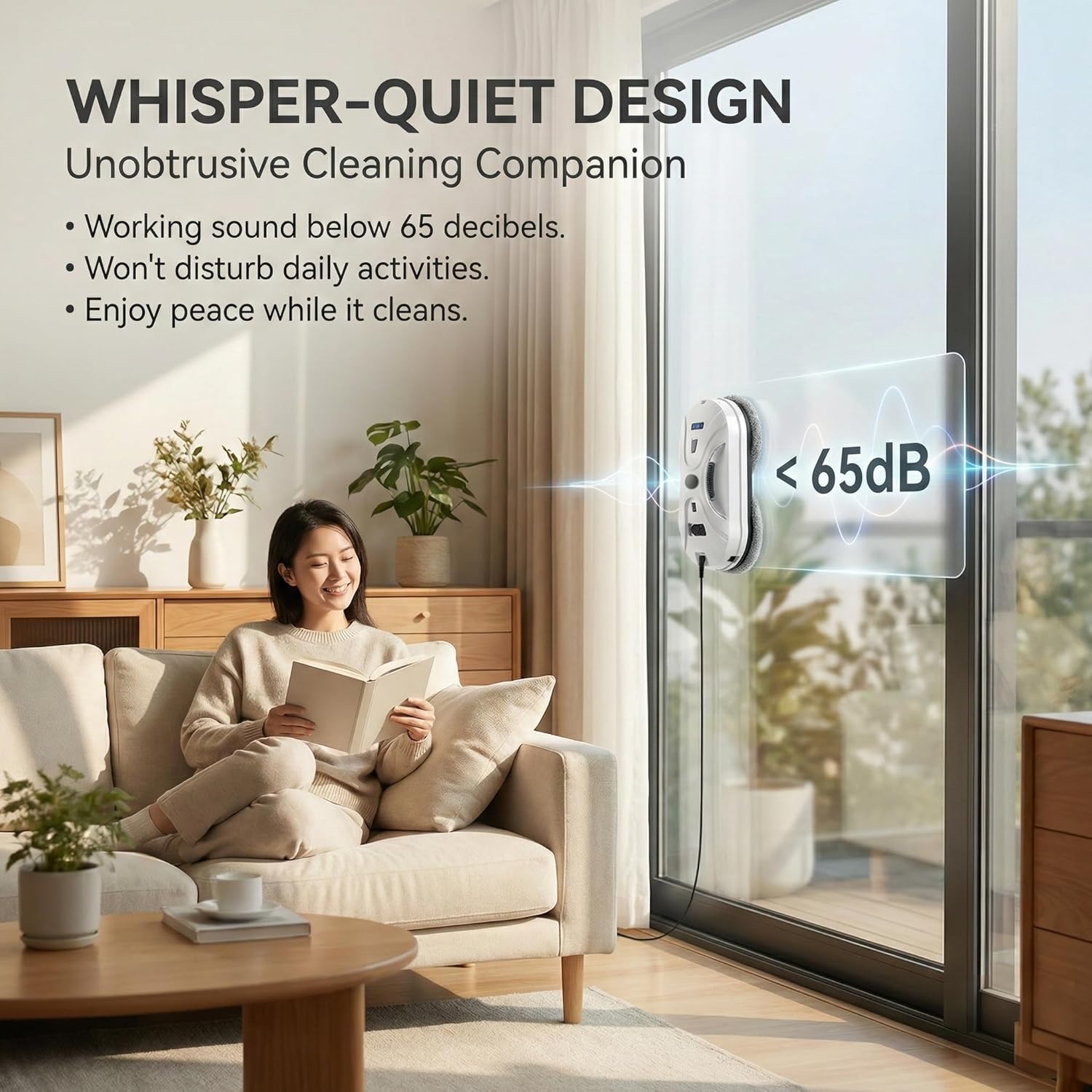 Intelligent Cleaning Technology: The window cleaning robot features advanced sensors and AI 5.0 path planning, enabling it to detect and plan the most efficient cleaning path. With its intelligent edge detection system, the robot adjusts its direction whenever it detects window frames or obstacles, ensuring streak-free, thorough cleaning every time. No corner or edge is left untouched as the robot seamlessly navigates around frames to give your windows a spotless finish
