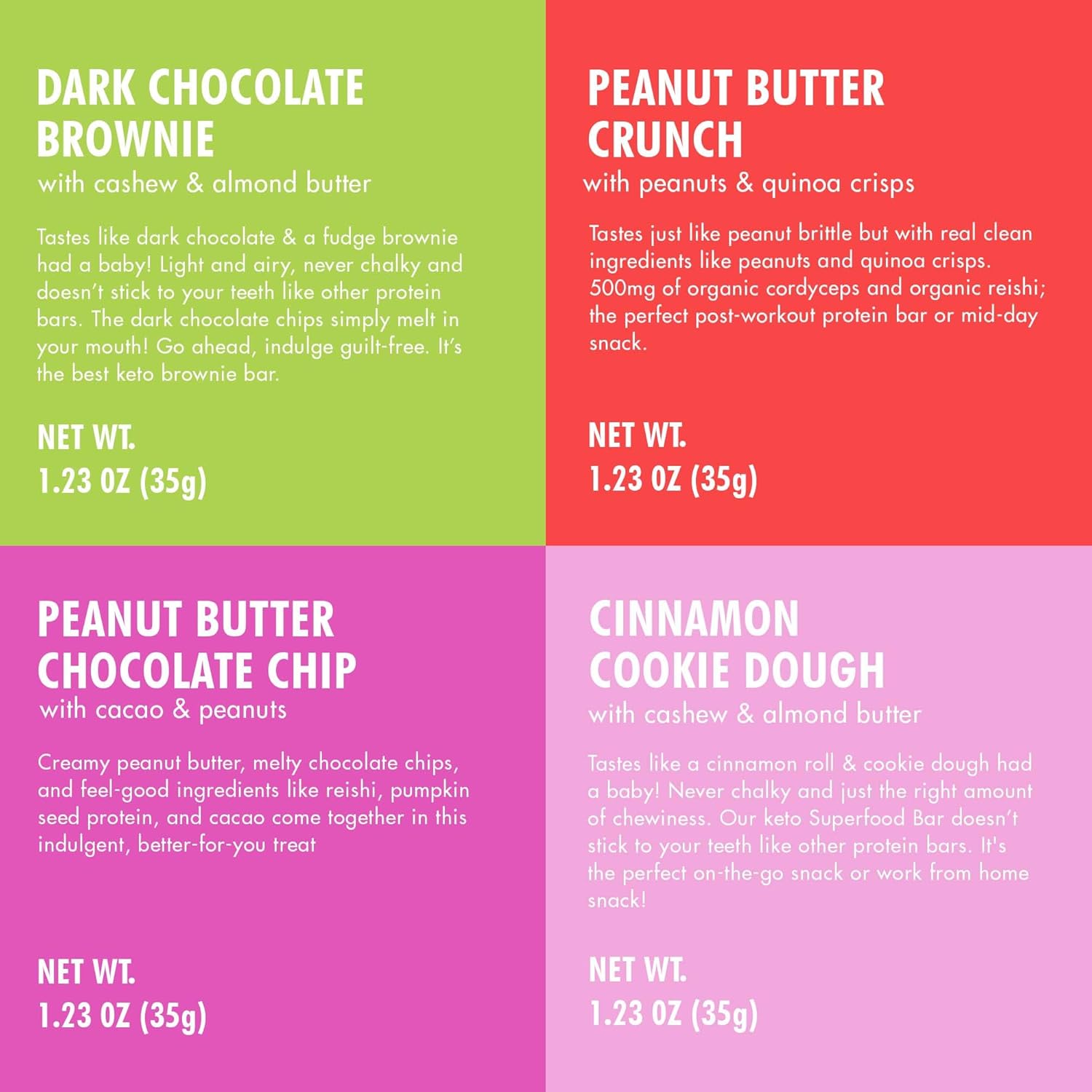 ✅ VARIETY PACK: Want to try each of our bestselling superfood keto protein bars? Our Variety 12-pack gives you the best of both worlds: clean plant-based ingredients you trust, delicious flavors you crave!