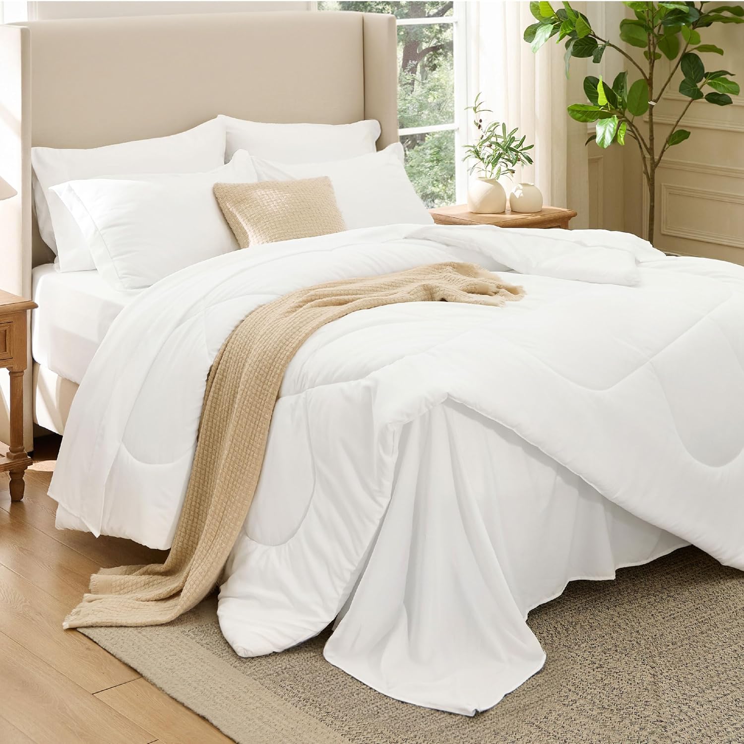 LONG-LASTING & EASY CARE: Machine washable and tumble dry low, this queen comforter set with sheets is simple to care for. Quilted stitching locks filling in place, so even after repeated washes, it stays fluffy without shifting or clumping