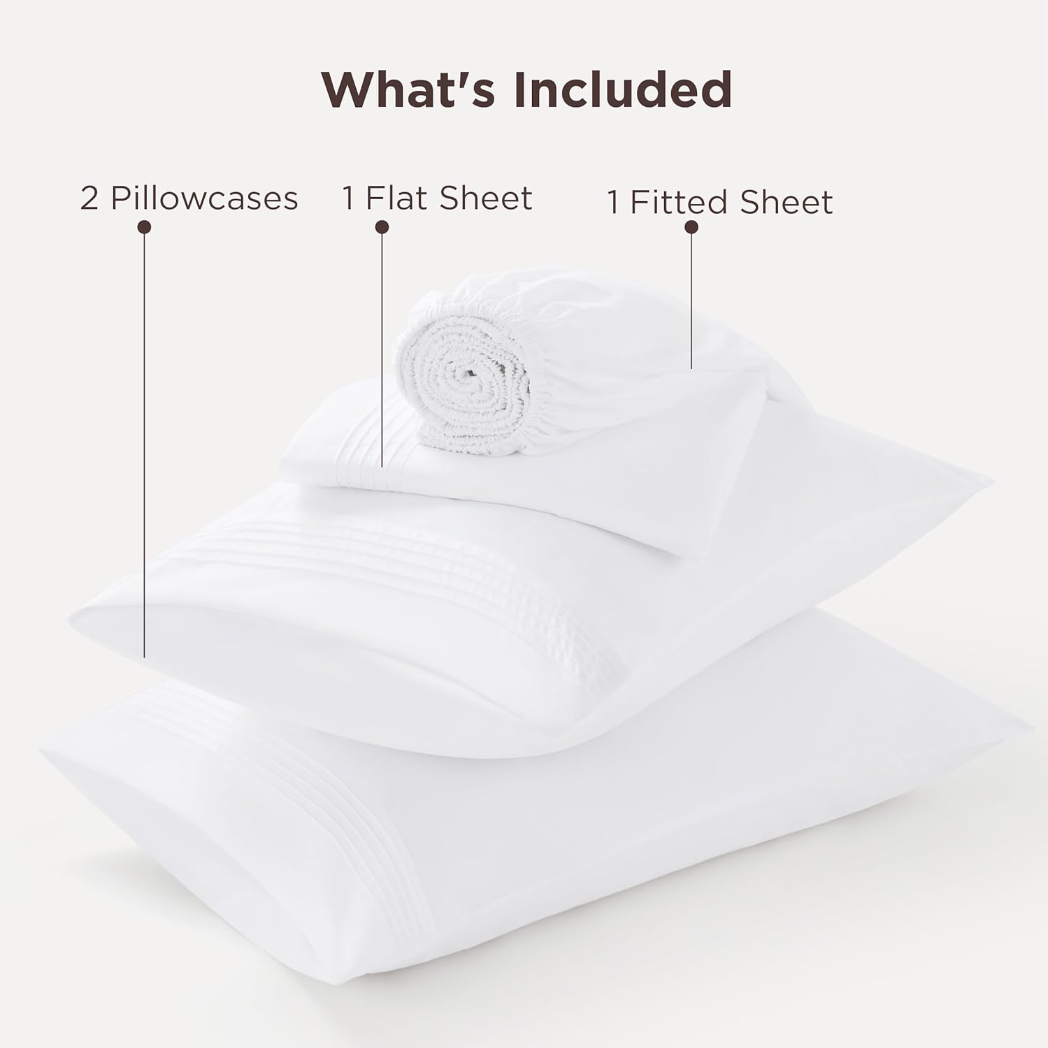 What You Can Get: This queen sheet set includes one flat sheet (90″ x 102″), one fitted sheet (60″ x 80″), and two pillowcases (20″ x 30″)