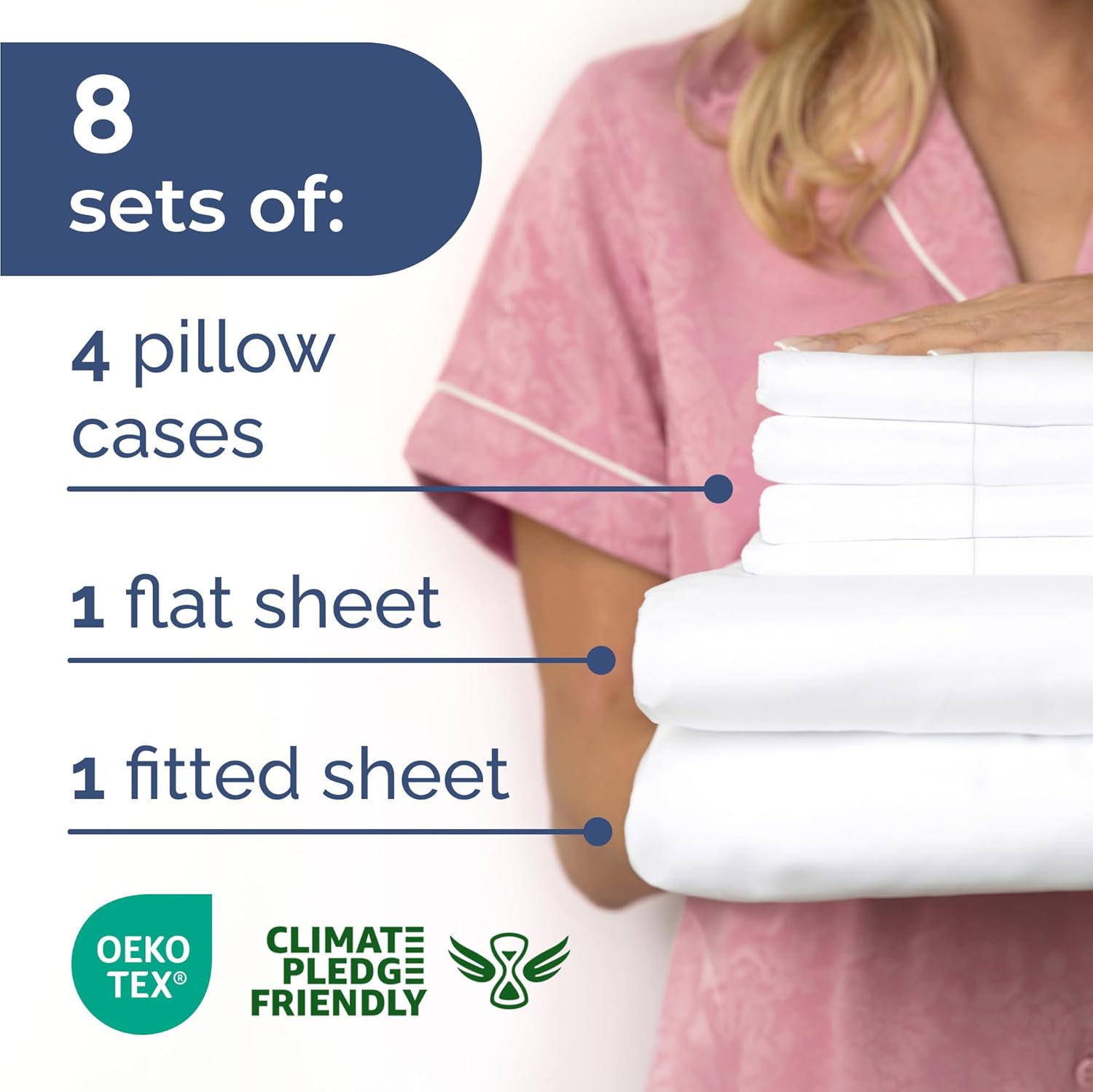 EASY-CARE & LONG-LASTING: Designed with convenience in mind, these bulk sheets are machine washable and exceptionally easy to care for. They’re durable, shrink-resistant, fade-resistant, and stain-resistant, making them ideal for settings where sheets are changed frequently. Enjoy hassle-free maintenance and hotel luxury quality without the luxury price tag. The retail value of these sheets in our bulk 8 pack, if ordered individually, would be more than double!