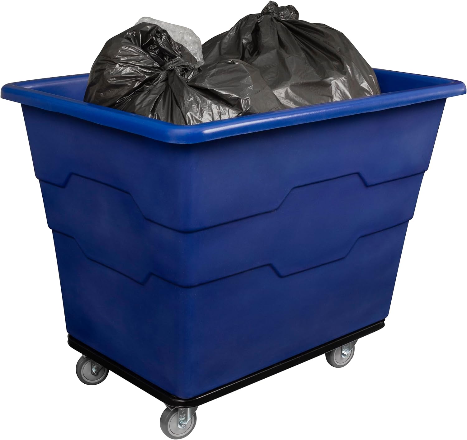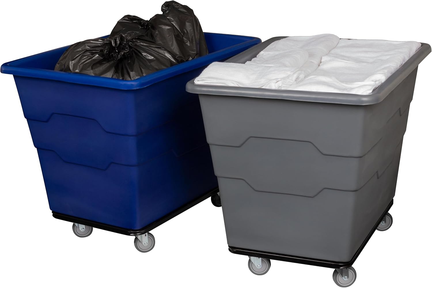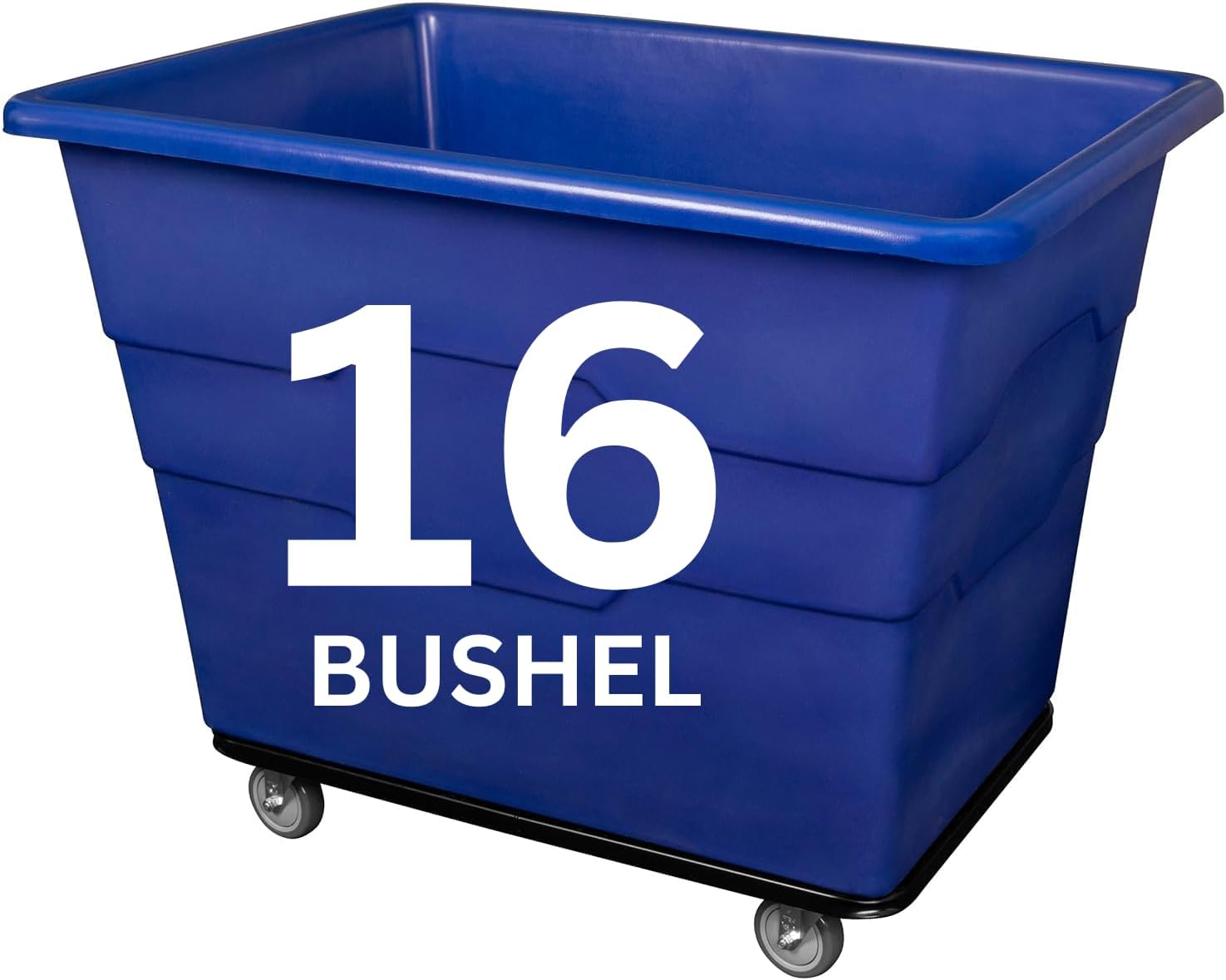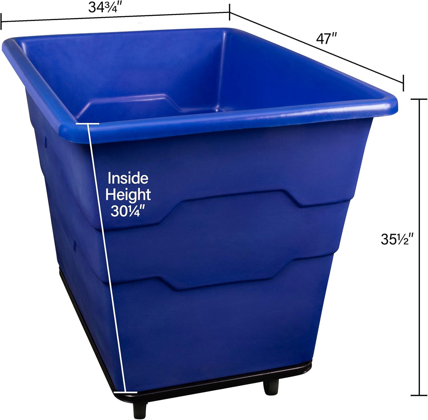 Commercial 16 Bushel Utility Cart with Steel Base, Poly Box Basket Truck, Laundry Cart, and Rolling Trash Bin, 47-Inch x 34.75-Inch x 35.5-Inch, 1000 Pound Weight Capacity, Blue