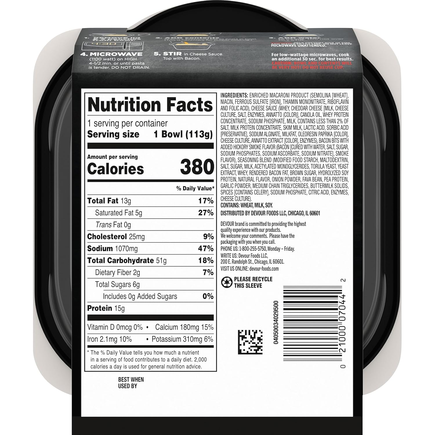 DEVOUR Sharp Cheddar bacon Mac & Cheese is made with top grade ingredients