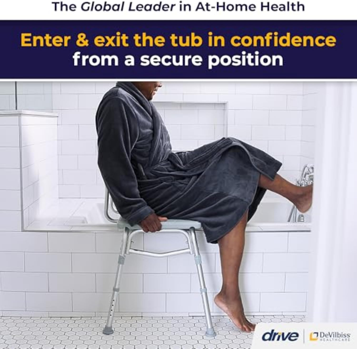 The Drive Tub Transfer Bench for Bathtub is designed to make bathing easier and more accessible for individuals who face mobility challenges, balance concerns, or injury recovery needs. This bench allows users to enter and exit the bath with far greater confidence by enabling a sit-and-slide motion across the edge of the tub, eliminating the need to step over high bathtub walls. A supportive backrest and a spacious seat help users feel more secure and stable throughout their bathing routine, promoting comfort and independence. Constructed with a durable yet lightweight aluminum frame, the transfer bench offers a strong, reliable foundation for everyday use. The A-frame structure enhances stability, while non-slip suction-style feet help anchor the bench securely on wet surfaces. Drainage holes in the seat prevent water accumulation, ensuring a more comfortable and hygienic showering experience. This makes it an excellent choice for seniors, individuals with disabilities, or anyone who requires added security in the bathroom. The height-adjustable legs allow users to raise or lower the bench in small half-inch increments, providing a personalized fit that supports proper positioning and ease of transfer. Its reversible design enables the bench to adapt to different bathroom layouts, ensuring compatibility with most standard bathtubs. With a weight capacity of up to 350 lb, the bench is built to provide dependable support for a wide range of users. Founded in 2000, Drive Medical has rapidly become a leading manufacturer of durable medical equipment with offices throughout the world. With the 2015 acquisition of DeVilbiss Healthcare, an innovator in respiratory care since 1888, we expanded to include a full line of reliable oxygen and respiratory products used in more than 100 countries. Our name, Drive Medical, reflects both our dynamic, forward-moving spirit as well as this long legacy of supporting lives.