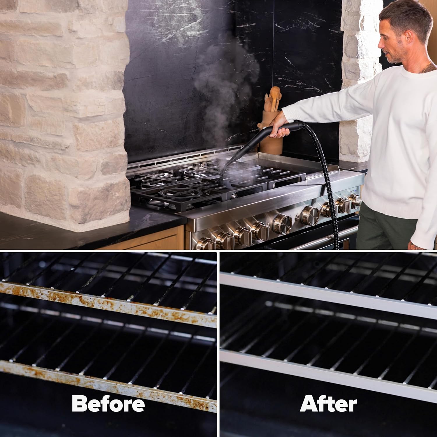Deep clean, no residue: lifts grease, stuck-on spills and bathroom buildup using only water; safer choice around kids and pets