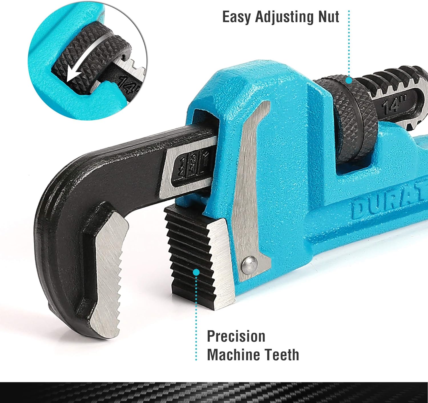 Drop forged and heat treated jaws in high quality steel resist distortion or breakage, offer professional enhanced durability and maximum torque. The teeth are sharp, high hardness and wear resistance. For the exquisite manufacture, the teeth of the wrench is precise. It can grip pipes securely and tightly