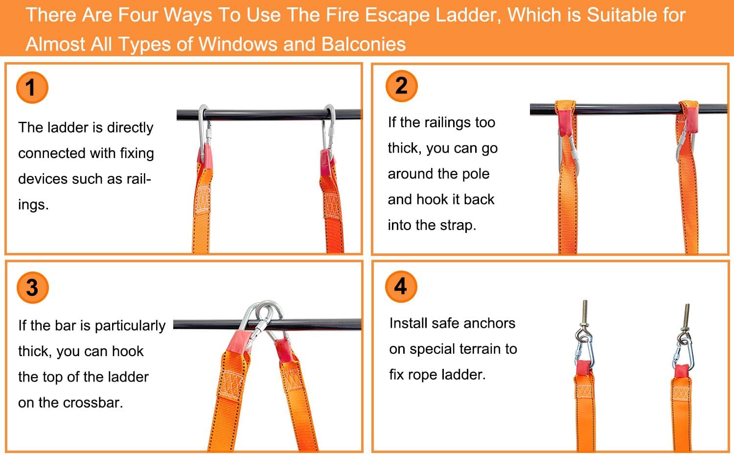 MULTI-SITE USE: Our fire escape rope ladder can be used by adults and children. It is a great choice for hotels, offices, schools, residential buildings, etc. It is also very suitable for indoor or outdoor game sets, tree houses, and playgrounds.