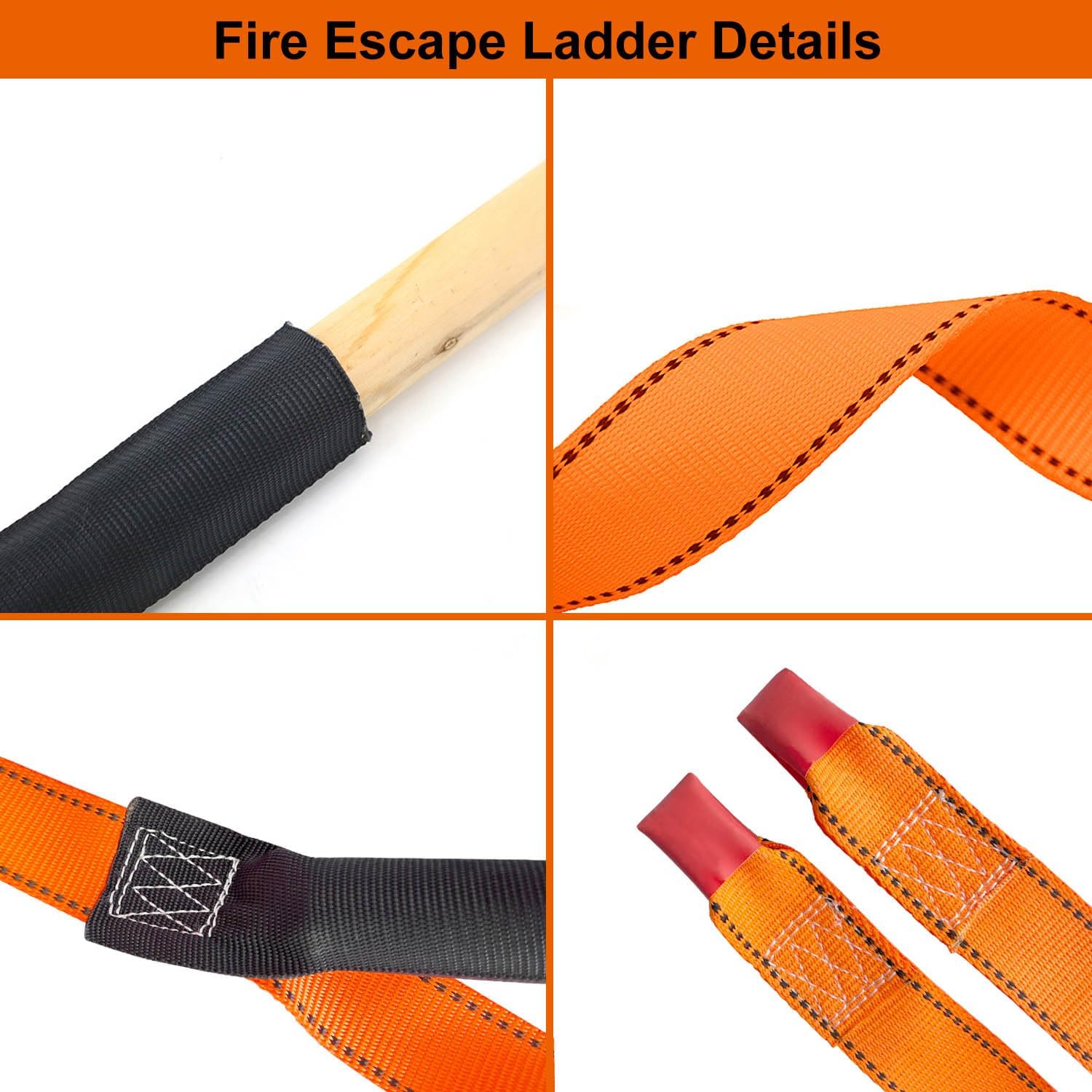 HIGH-QUALITY MATERIAL: Our fire escape ladder is made of high strength polyester webbing, which is strong sturdy, stable and reusable, and the load-bearing capacity can be as high as 2300 pounds.