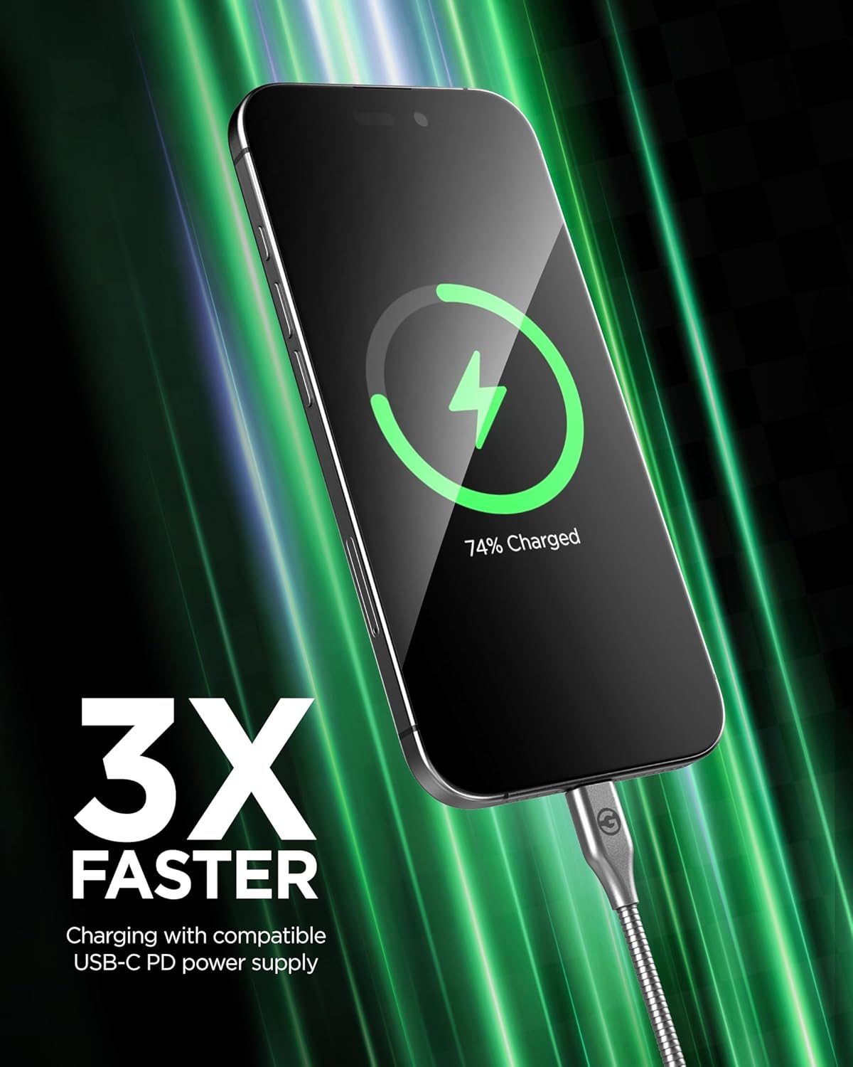 Fast Charging: Charge up to 3 times faster with compatible USB-C PD power supply (supports speeds up to 3A/60W)