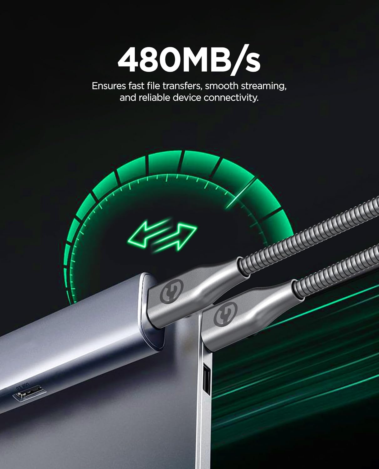 Experience blazing-fast data transfer speeds with this high-performance USB cable! With a transfer rate of up to 480MB/s, you can move large files, stream high-definition content, and enjoy seamless device connectivity. Say goodbye to frustrating wait times and hello to efficiency!