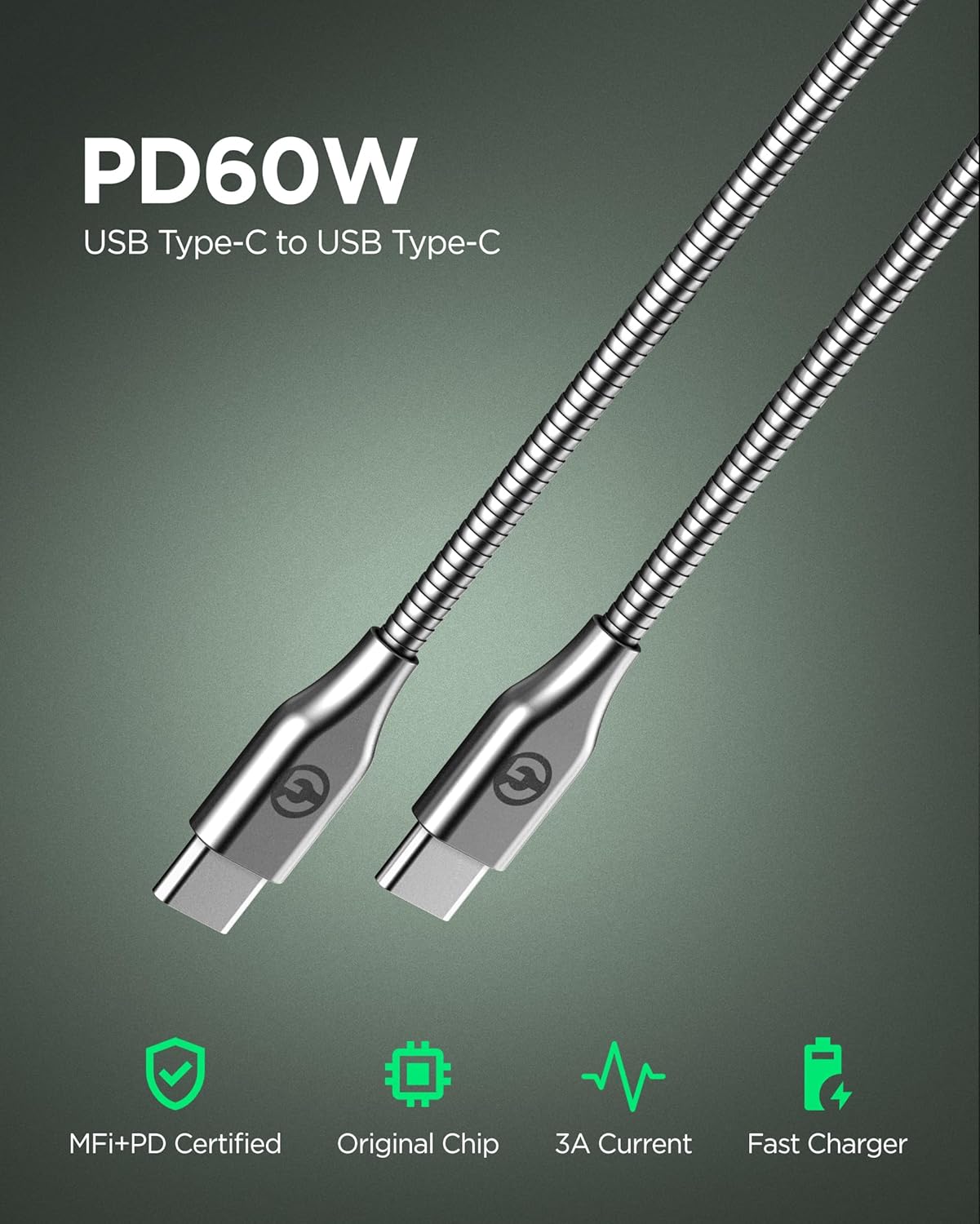 Pet Proof: This set of 2 USB-C cables features full length metal housing for maximum durability and resistance to chew-related damage. Perfect for homes with pets!