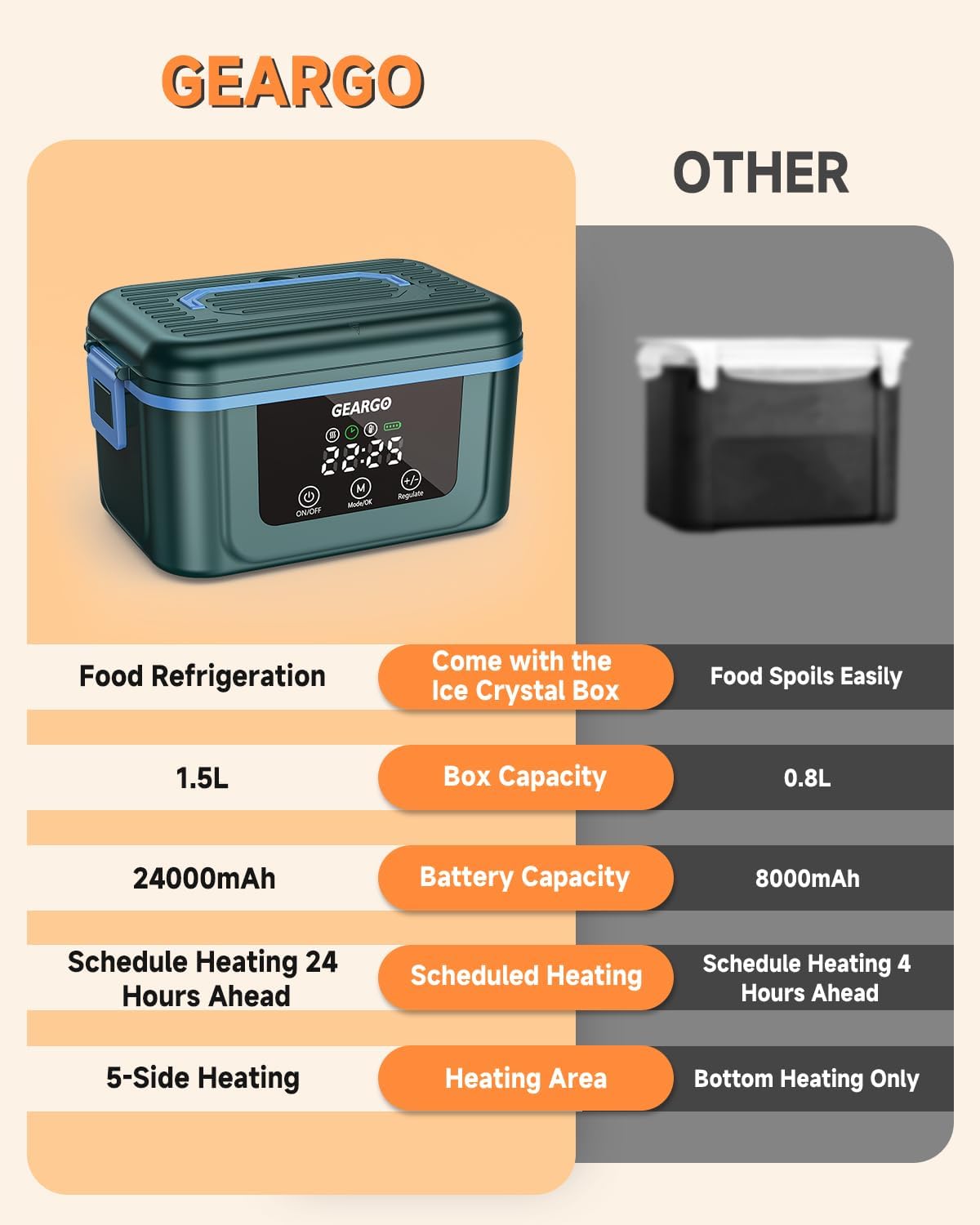GEARGO πŸπŸŽπŸπŸ” π”π©π π«πšππžπ Cordless Electric Lunch Box, 6.3 Cups & 24000mAh Rechargeable Heated Lunch Box with Ice Crystal Box, 24 Hours Scheduled Self Heating Lunchbox For Men Women