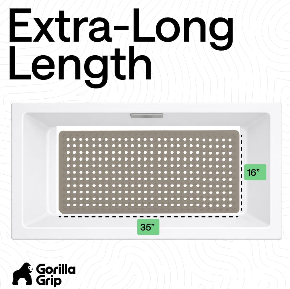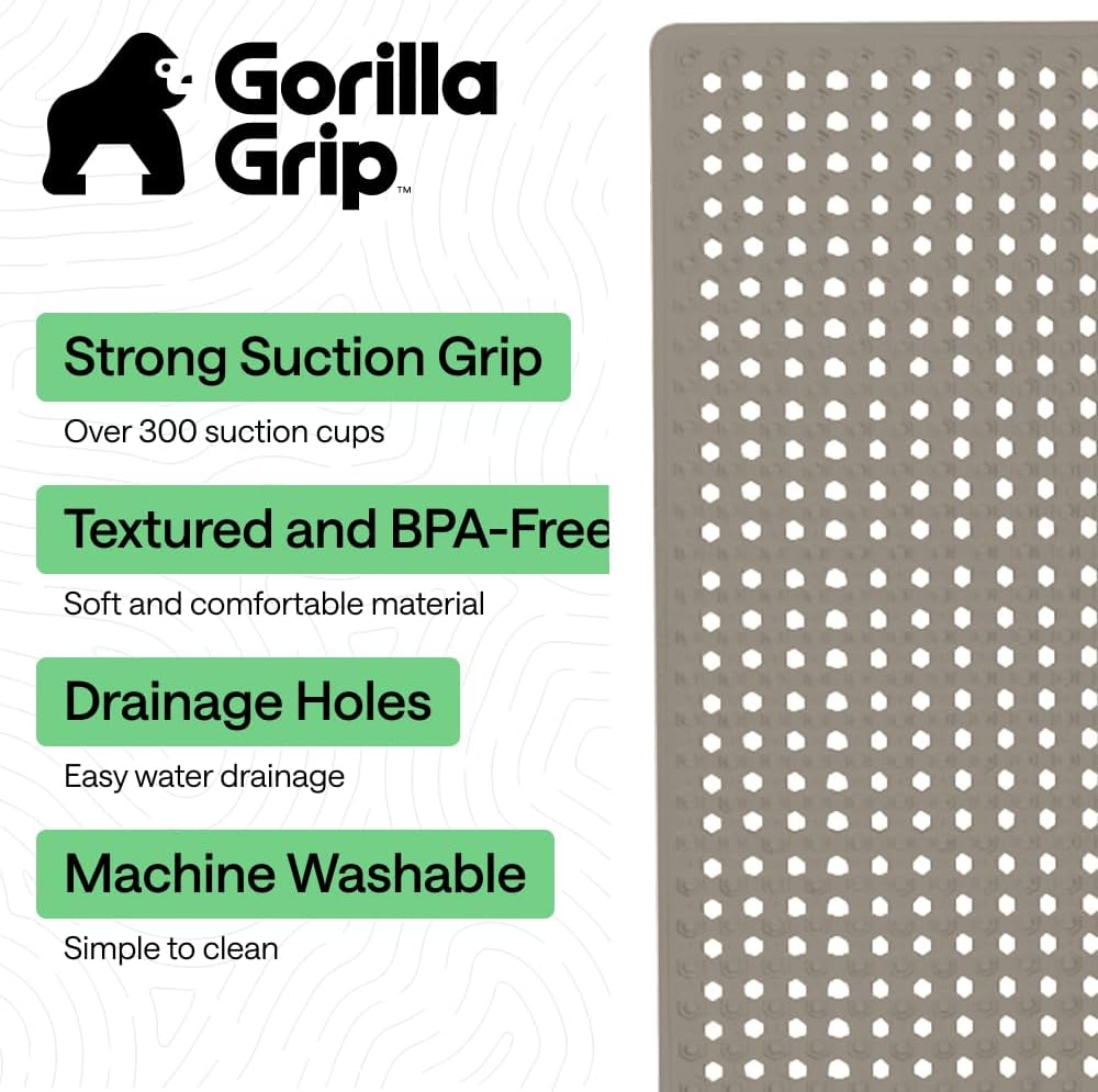 The Gorilla Grip Bathmat is designed to stay in place. Powerful suction cups help to provide a firm hold onto smooth tub and shower floors. Plus, the mat’s generous size provides more coverage.