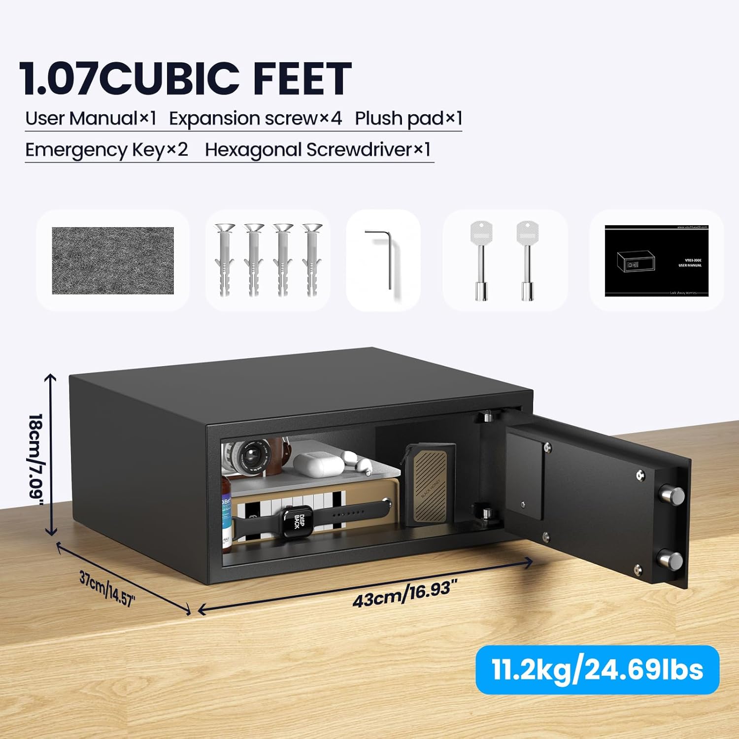 Note: Please check the product size before purchase SIZE: The college dorm size is 14.57″D x 16.93″W x 7.09″H, the internal dimensions are 16.65″ W x 6.29″ H x 12.2″ D, and the door opening dimensions are 14.56″ W x 5.11″ H.