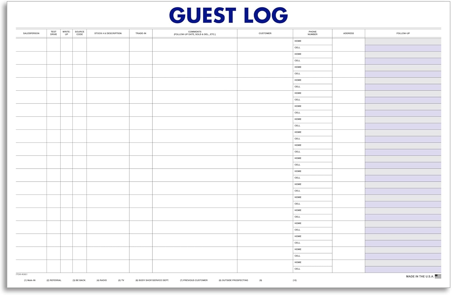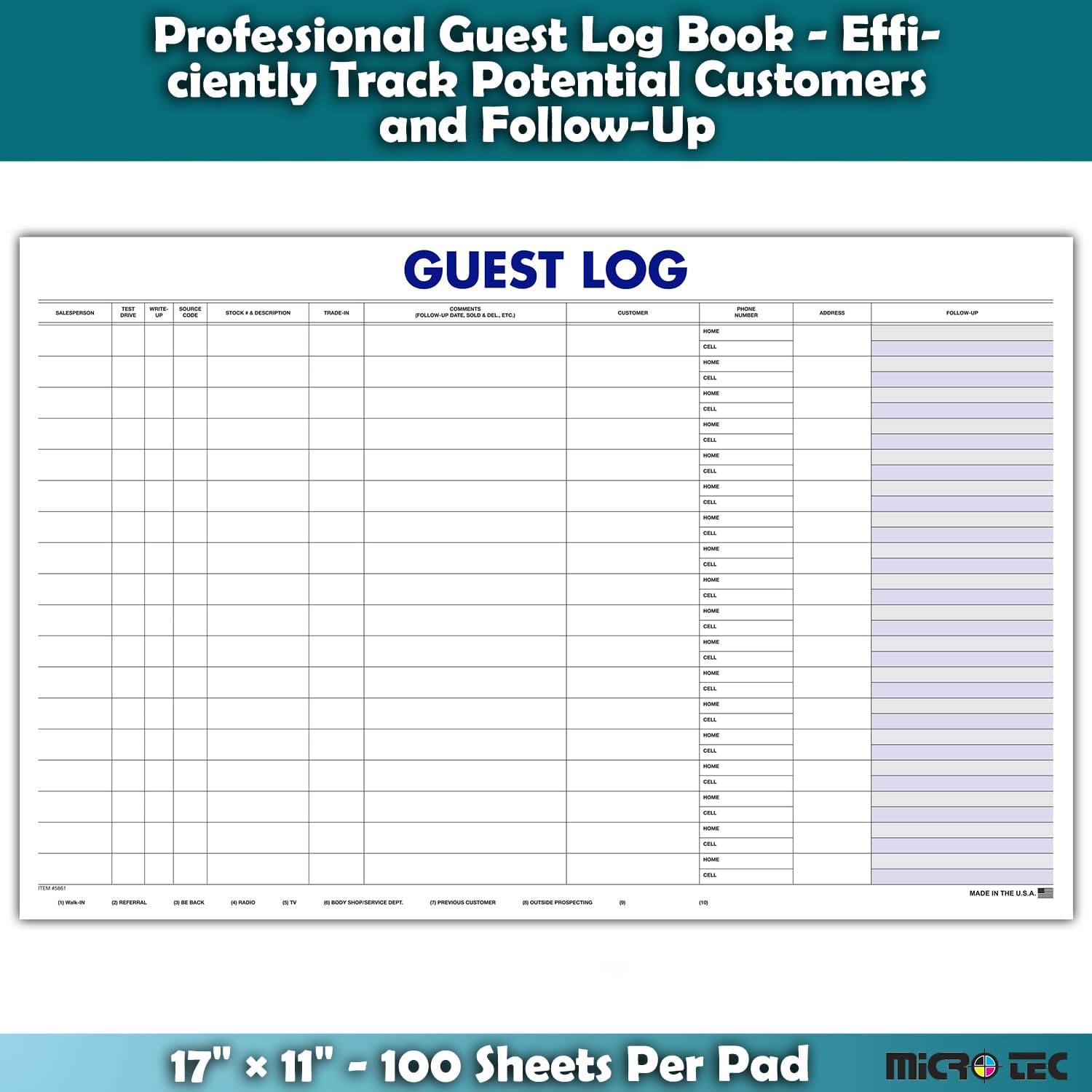 100-SHEET PAD FOR HIGH-VOLUME CUSTOMER TRAFFIC MANAGEMENT: Includes 1 pad with 100 sheets, offering long-lasting use in car dealerships, automotive repair shops, and service departments. Perfect for daily guest sign-ins, appointment logs, and customer follow-up tracking.