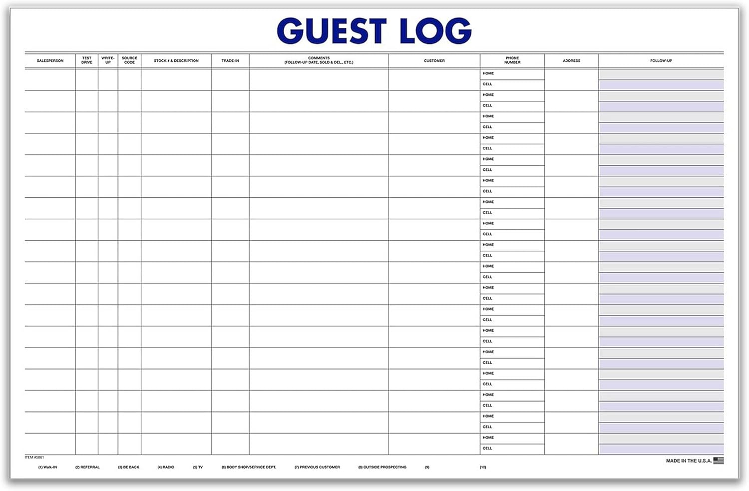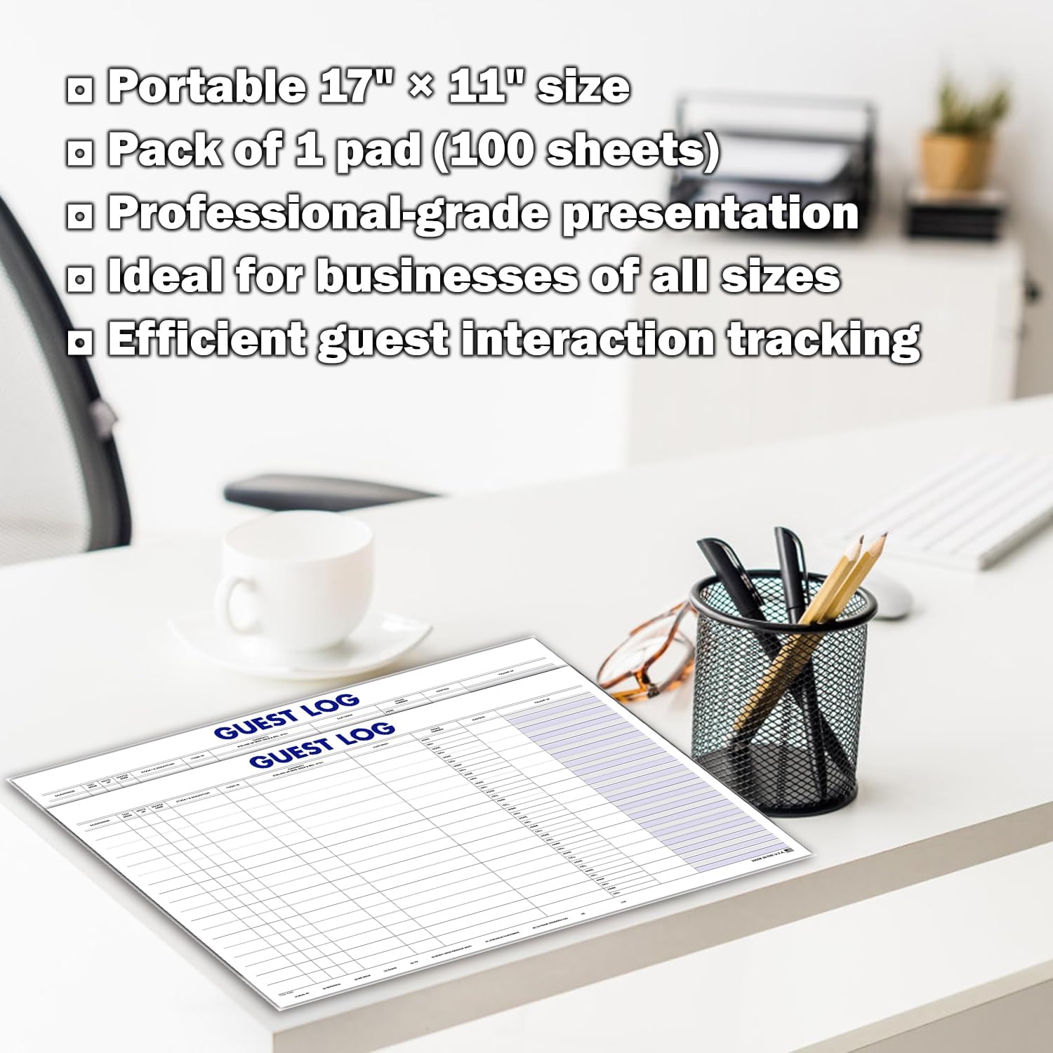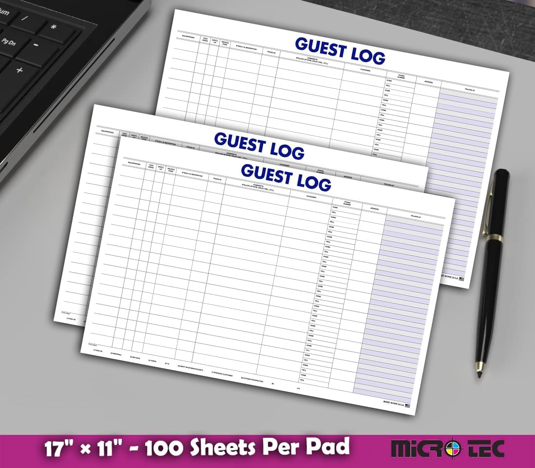 LARGE 17″ × 11″ SIGN-IN FORMAT FOR CLEAR, ORGANIZED ENTRIES: Spacious layout provides a wide writing area for documenting customer names, phone numbers, vehicle details, appointment notes, and visit purpose. Ideal for busy showrooms, service bays, and sales floors requiring detailed visitor recording.