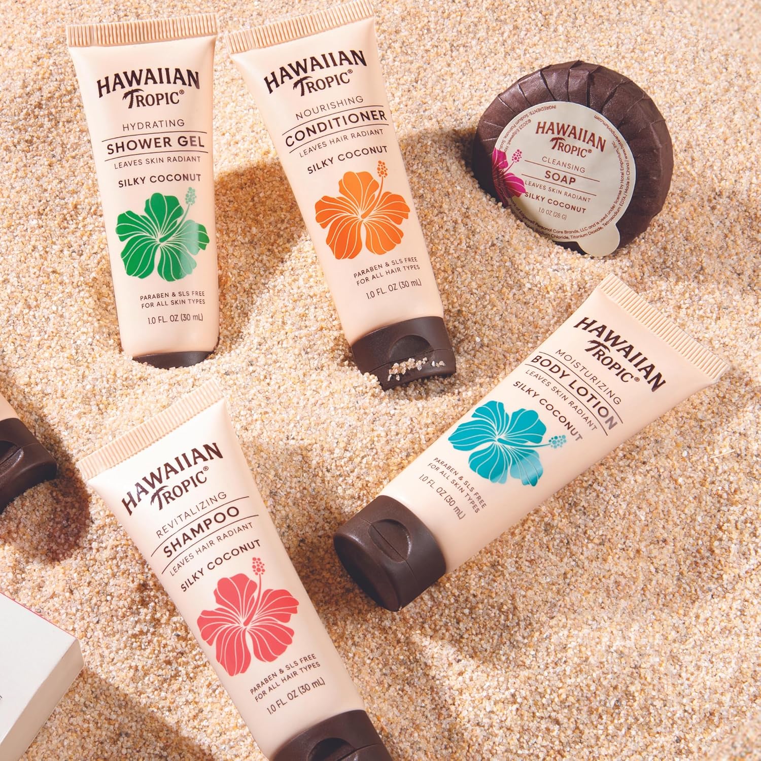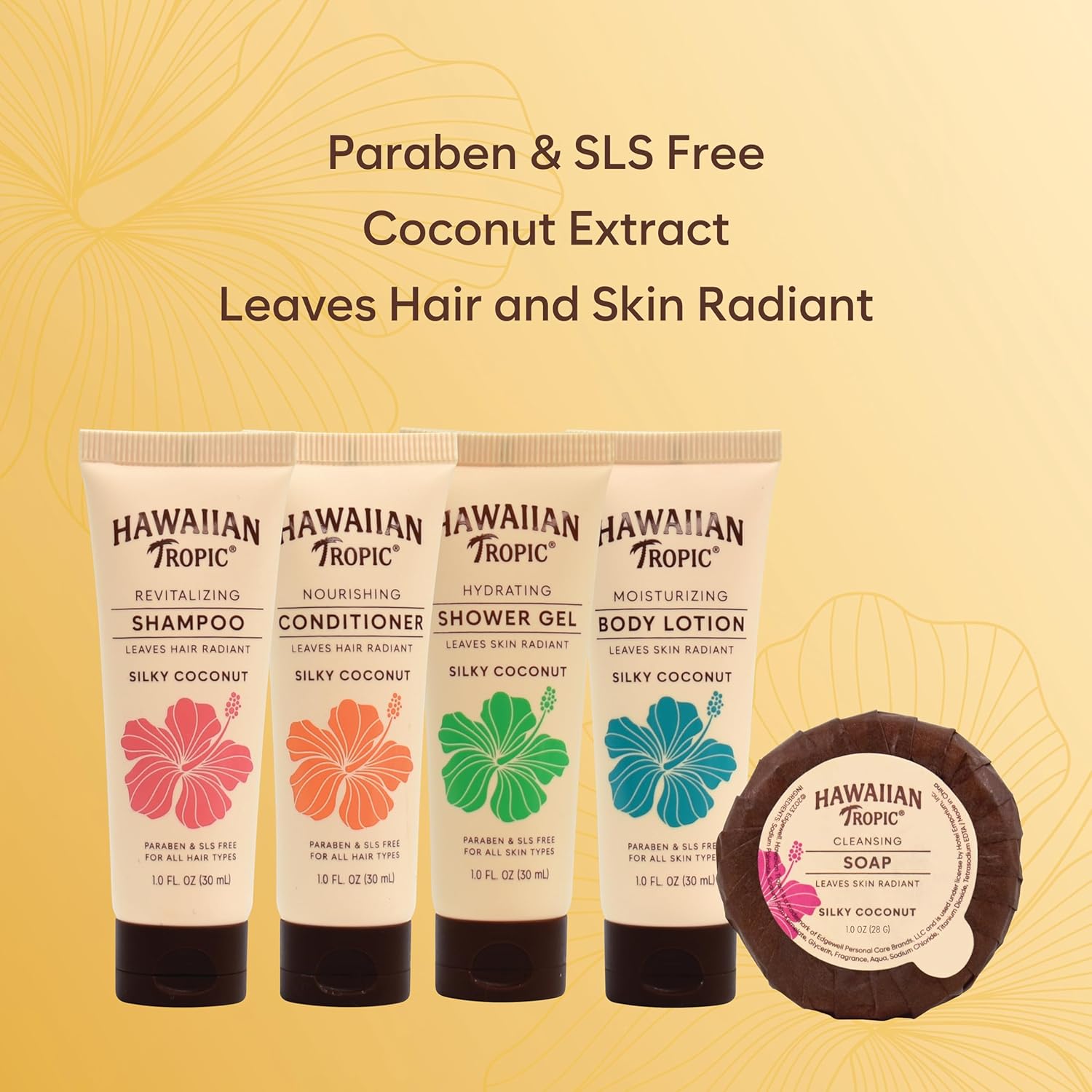 NATURAL INGREDIENTS: Each product in the Hawaiian Tropic Full Set is crafted with care, using high-quality ingredients to ensure a natural and wholesome experience. Free from harsh chemicals, our mini shampoo and conditioner, body wash, and lotion leave your skin feeling soft, hydrated, and rejuvenated.