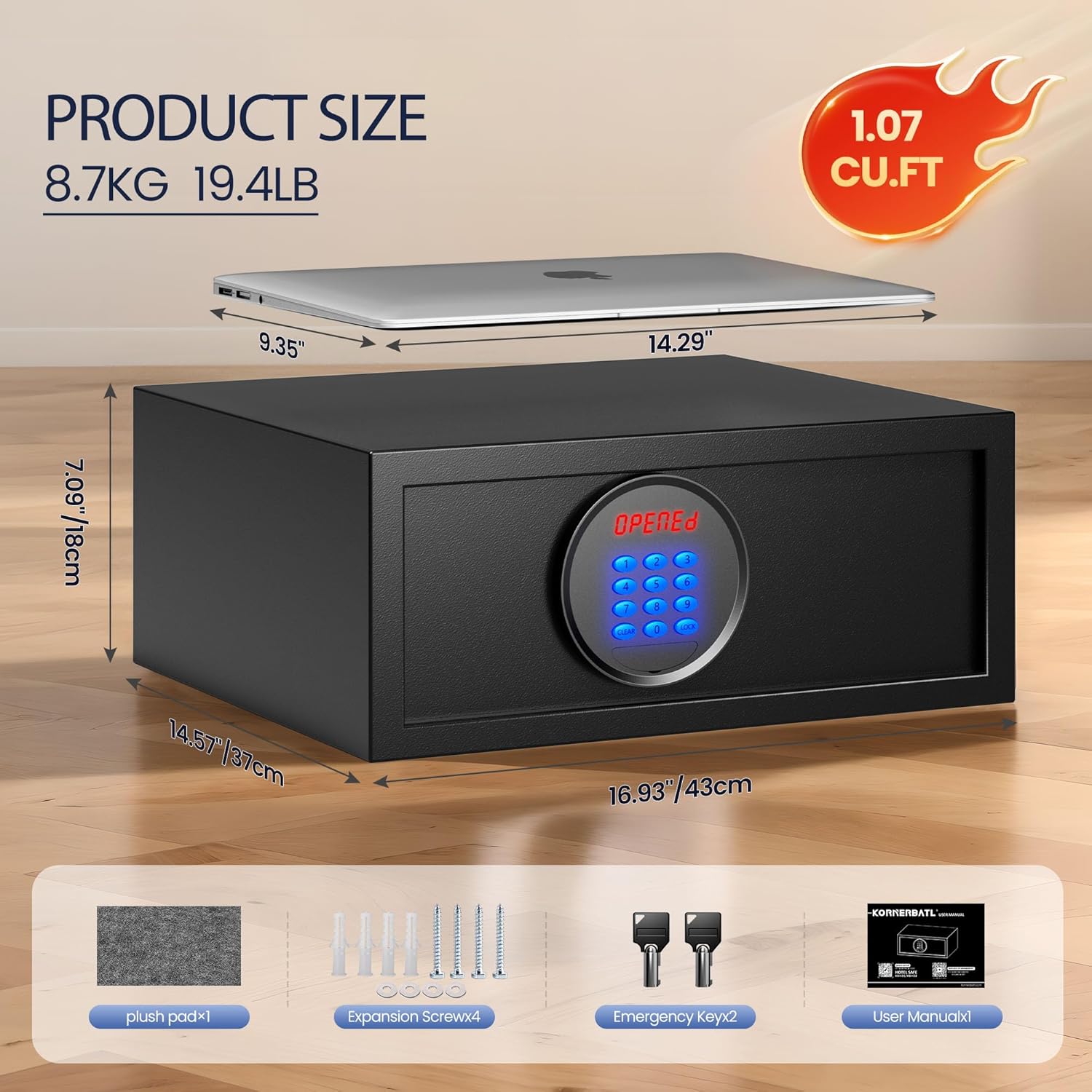 Audit-Trail Function: The safe cannot be opened or reset with an error code, ensuring maximum security. It includes an audit-trail feature that lets you check opening and closing records using a handheld CEU device (sold separately)