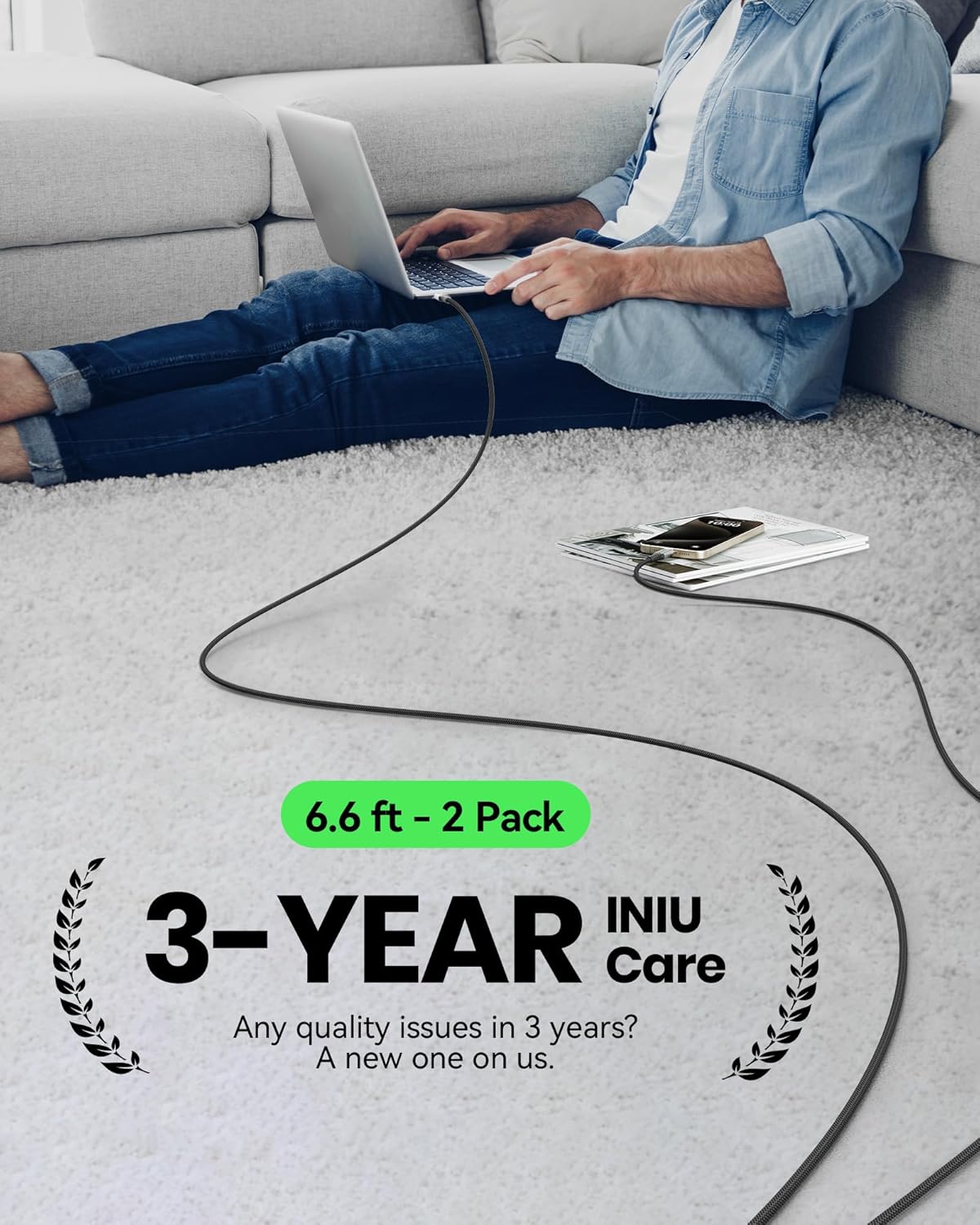 INIU USB C Cable, [6.6ft, 2-Pack] 100W USB C to C Fast Charging Cord, Braided Type C Charger Cable for iPhone 17 16 Pro Max, Samsung Galaxy S25 S24 Ultra, MacBook Pro iPad Air Switch 2 Steam Deck etc.