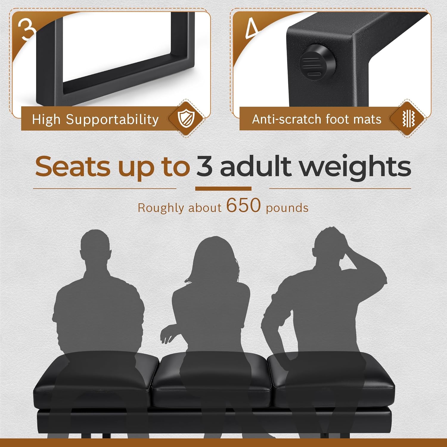 STRONG CONSTRUCTION: The black reception chair is a three-seat one-piece design with a weight capacity of up to 650 lbs, fully accommodating up to 3 adults.