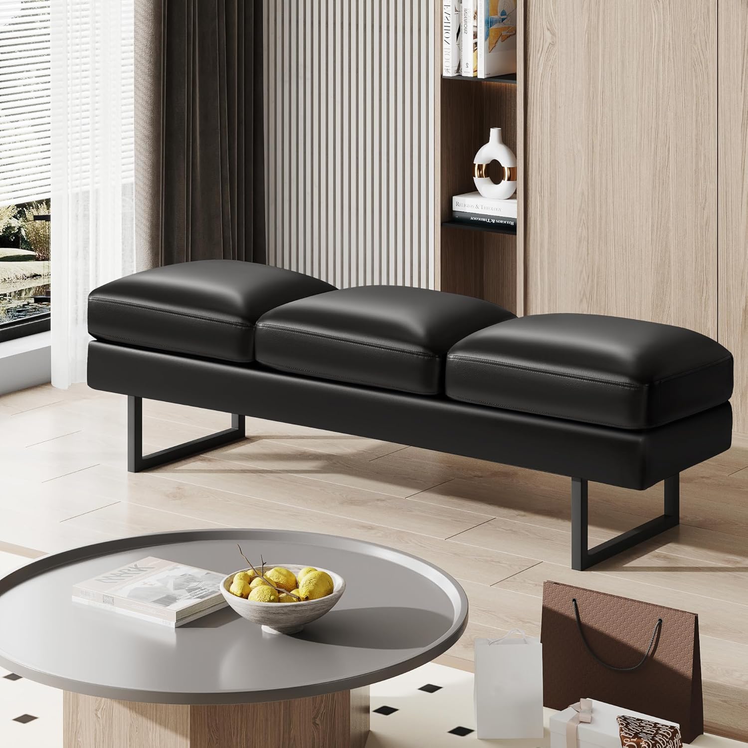 The black reception chair is a three-seat one-piece design with a weight capacity of up to 650 lbs, fully accommodating up to 3 adults.