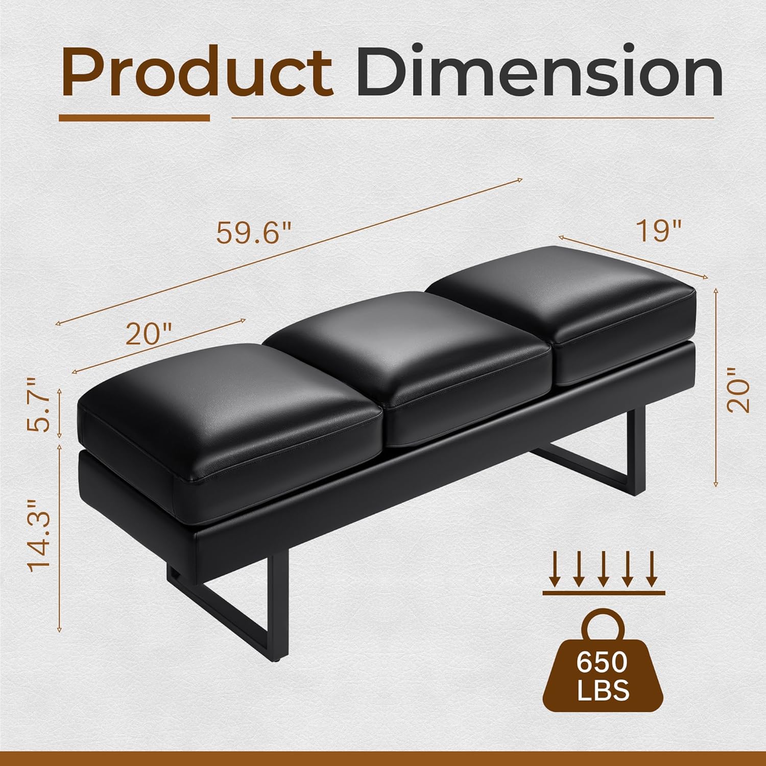 COMFORTABLE CUSHION: Waiting room seats are high density foam padded with a seat thickness of 5.7″ and a length of 59.6″. 19″ wide seat space provides comfortable seating for your guests.