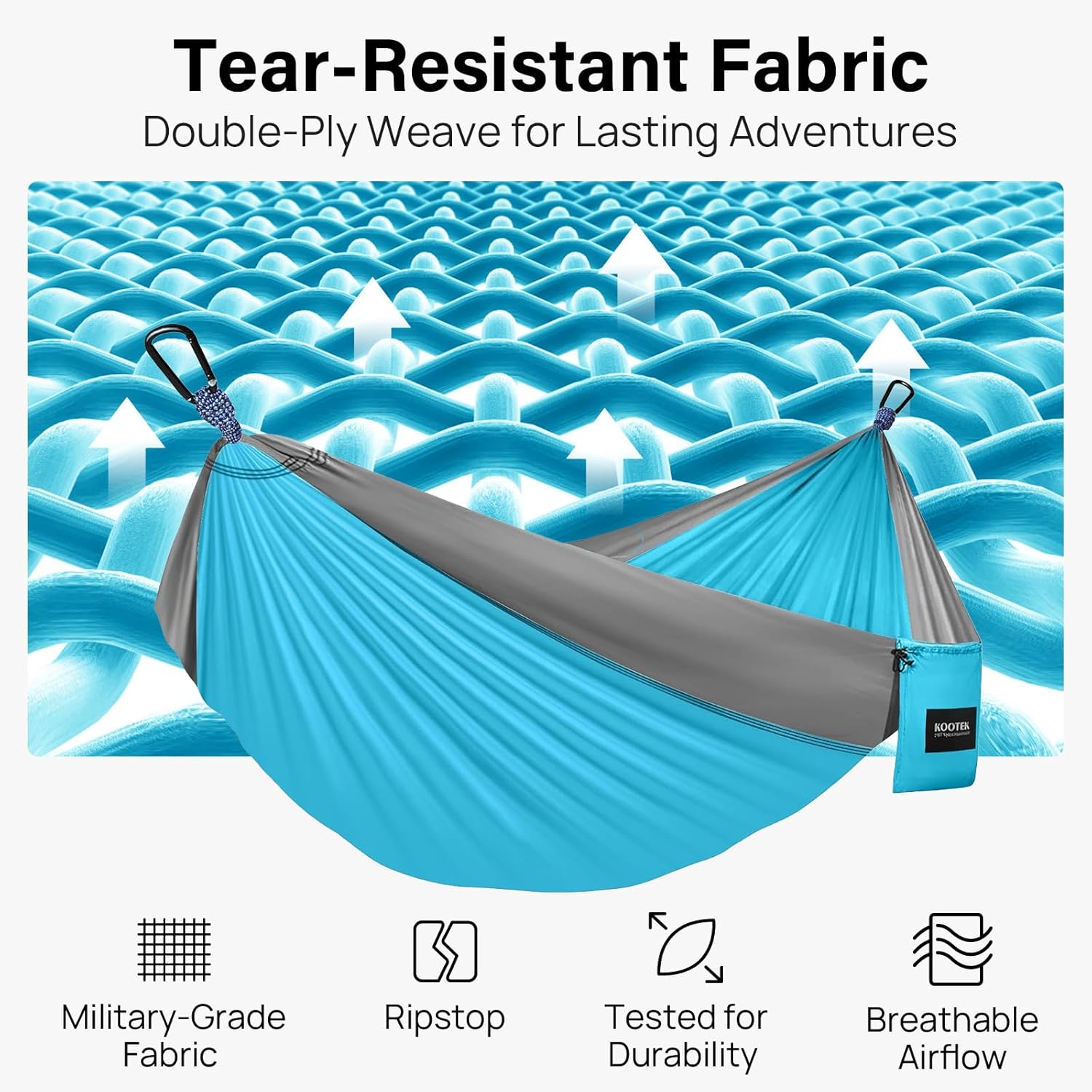 Rest comfortably in any climate. Made from premium parachute-grade nylon, our fabric feels silky-soft against your skin while allowing maximum airflow. It wicks moisture and dries quickly, keeping you cool in summer humidity and cozy during crisp evenings under the stars.