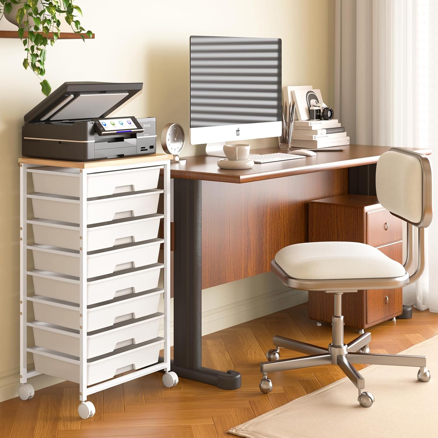 AMPLE STORAGE CAPACITY WITH MULTI-COLOR DRAWERS: This rolling cart with drawers features 8 drawers for easy categorization of your items. With overall size of 11.2″ D x 15.1″ W x 28.3″ H, it offers large space to store stuff orderly. Slide – out drawers with smooth tracks and ergonomic handles make opening and closing a breeze.