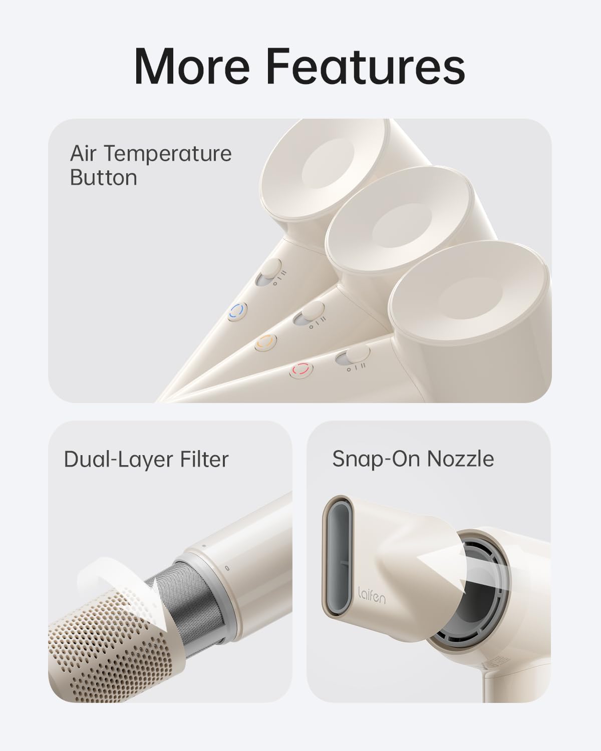 [Protection Against Heat Damage] Laifen advanced Smart Temperature Control microprocessor regulates the temperature 50 times per second so your hair is not damaged even in extreme heat.