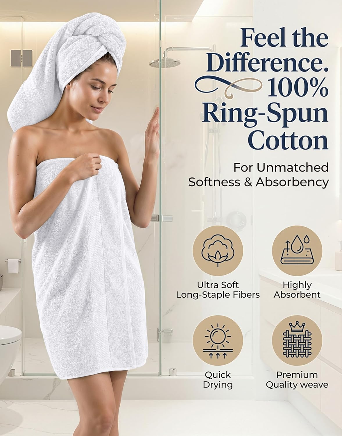 SOFT, ABSORBENT, DURABLE & 100% RING SPUN COTTON – Crafted from plush, long-staple fiber that stay fluffy and comfortable wash after wash. Reinforced hems and double-stitched edges provide lasting strength. Gentle on skin. Perfect for families, kids, guests, everyday use at home, gym, spa, or travel, delivering spa-quality comfort & lasting luxury.