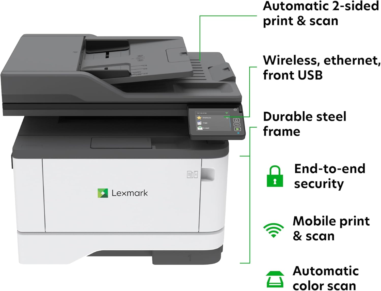 Lexmark MX431adw Laser Monochrome MFP Printer with Touchscreen, Copier Scanner Printer, Automatic Two-Sided Scanning, Wireless, Analog fax (29S0500)