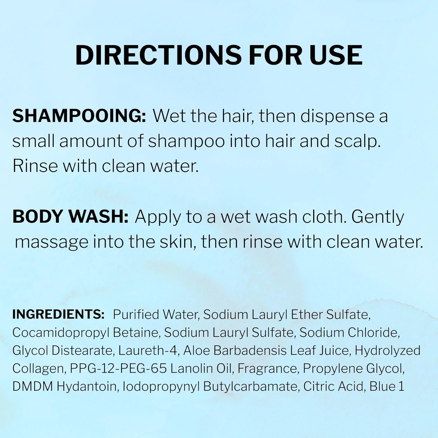 ENRICHED FORMULA: Infused with aloe vera, collagen, protein and lanolin—leaves skin smooth and hydrated, hair soft and manageable