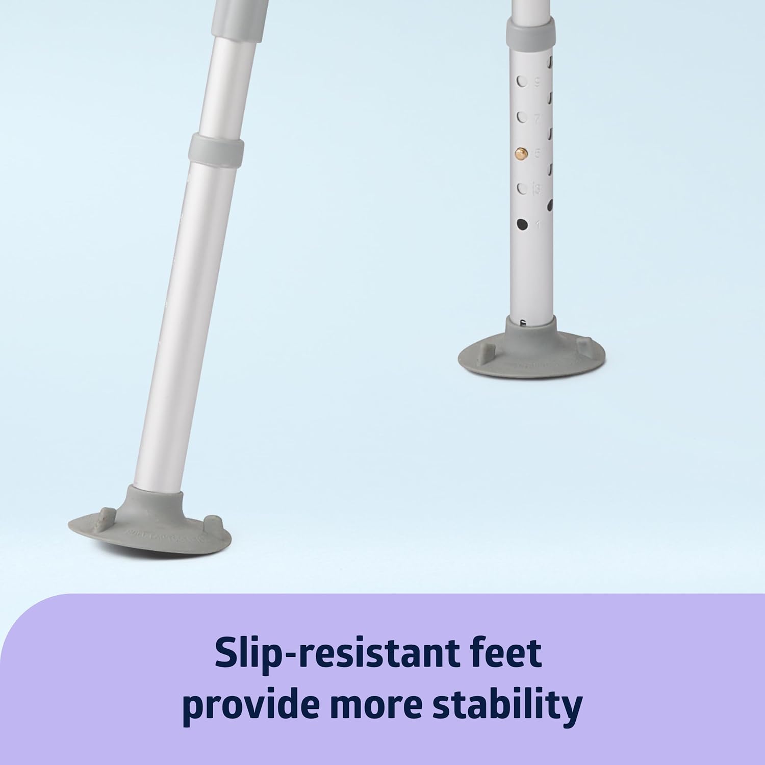 SLIP RESISTANT FEET—Slip-resistant feet help prevent sliding outside the tub; wide, suction cup feet add security in the tub