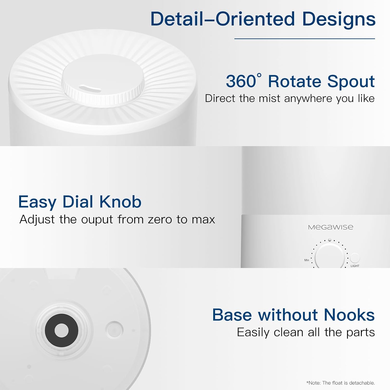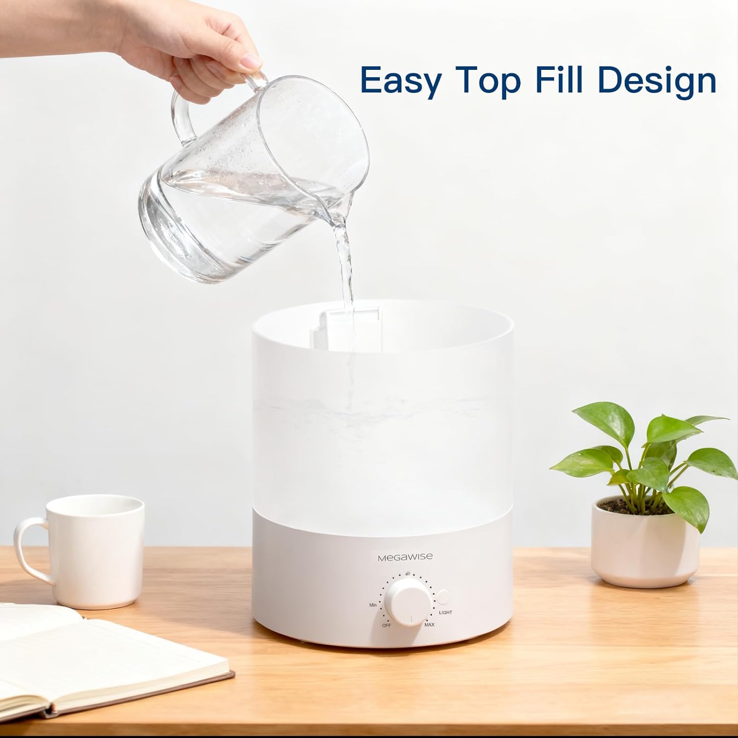 Compact and Stylish Design: With its sleek and modern appearance, this MegaWise Cool Mist Humidifier fits seamlessly into any room decor, offering both functionality and aesthetic appeal.