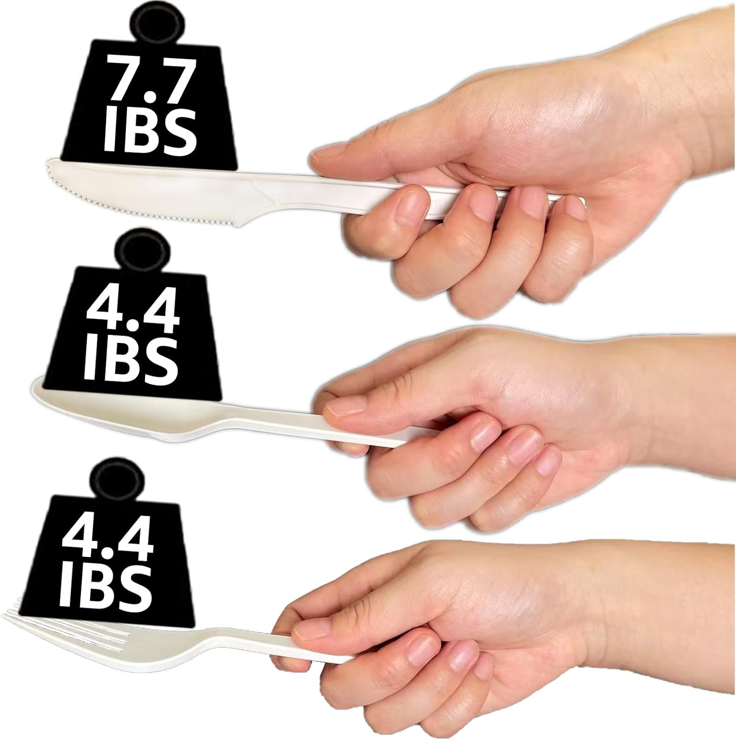 【✔️Heavy Duty & Unbreakable】2.5mm Heavy-Duty Design 30% thicker than regular disposable utensils. Won’t bend or break with pasta, steak, peanut butter, or ice cream. Holds 1.5lbs of food.