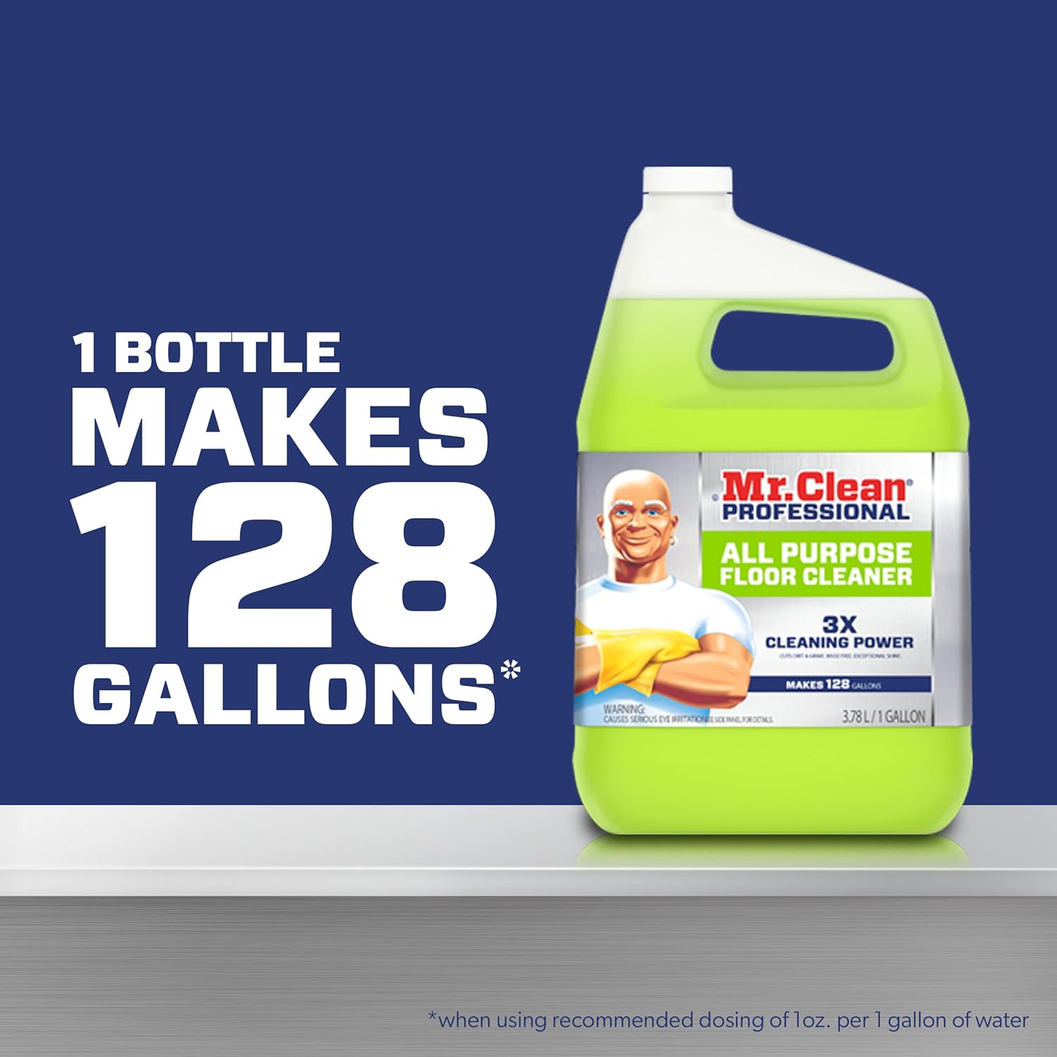 Mr. Clean Finished Floor Cleaner is a powerful professional floor cleaner liquid that removes tough ground-in dirt and preserves shine. Mr. Clean multi surface cleaner can be used on ceramic and vinyl tile, terrazzo flooring, and varnished hardwoods. This versatile floor cleaning product makes cleaning easy because it penetrates and dissolves tough grease and dirt on contact and is designed to extend life between scrub and recoat. Recommended dilution: manual (1:128), automatic machines (1:512).