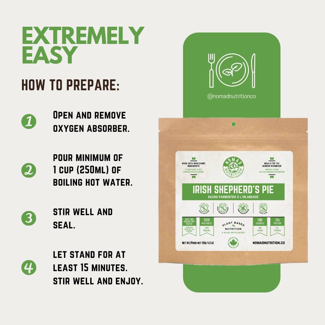 Ready in Minutes – Just add hot water for a quick, hassle-free meal! Whether you’re camping, hiking, or at home, our Irish Shepherd’s Pie fuels your day with wholesome, nutritious goodness that’s easy to prepare anytime, anywhere.