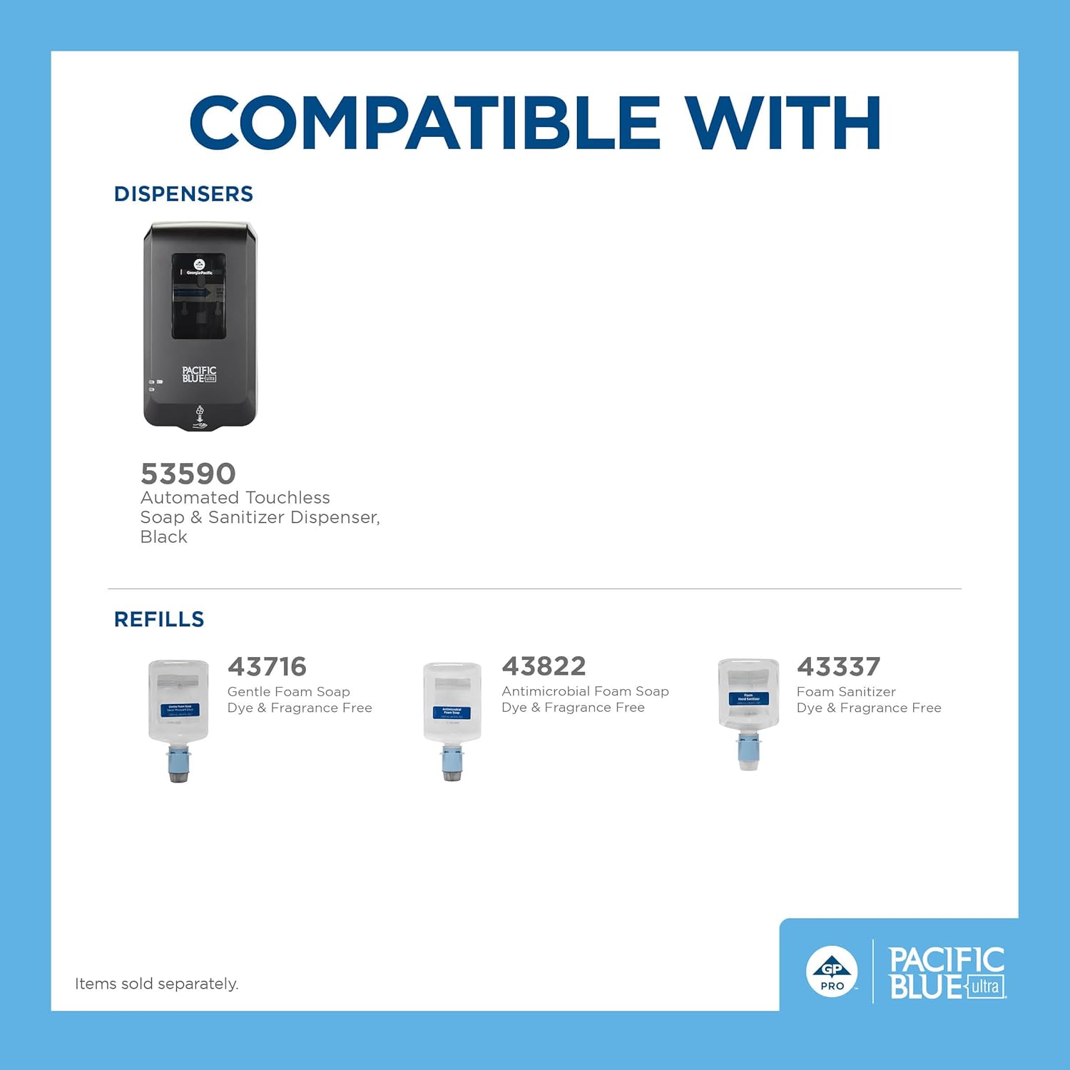 ONLY COMPATIBLE with the Pacific Blue Ultra Automated Touchless Soap and Sanitizer Dispenser (53590)