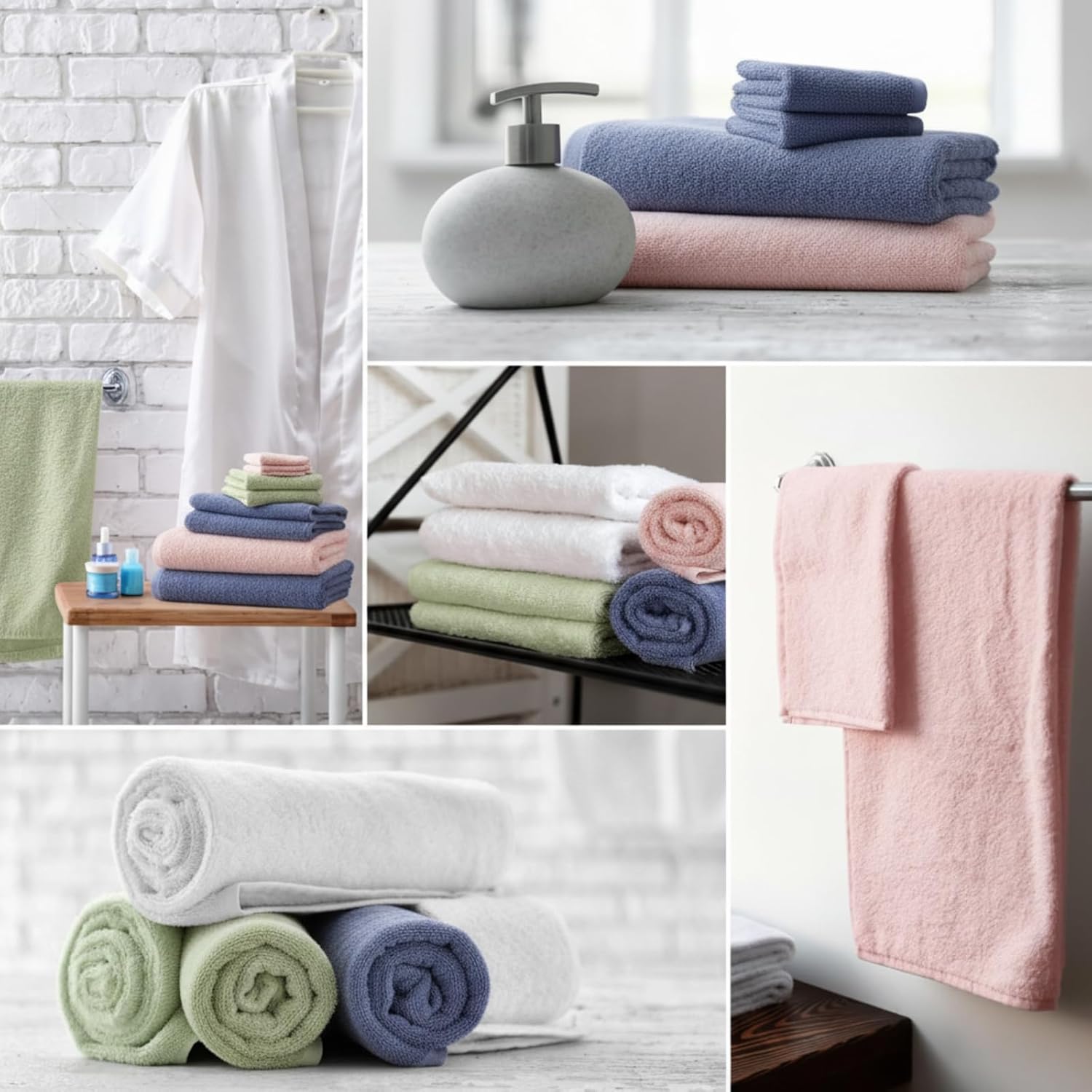 Bathroom Towel Set: these plush cotton towels set are soft fluffy and highly absorbent; The face towels for bathroom shower, bath sheets of this bath towels collection are must have for any bathroom decor