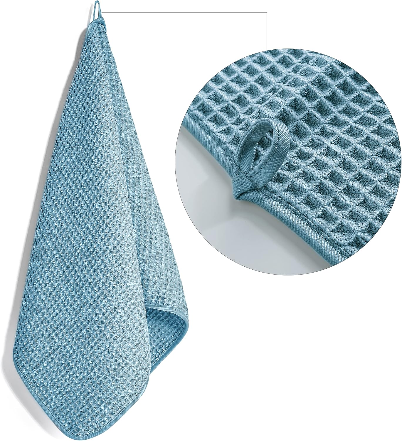 Microfiber thoroughly dries faster and gentler than traditional fibers; waffle weave feels smoother on your skin and is less likely to collect lint or debris