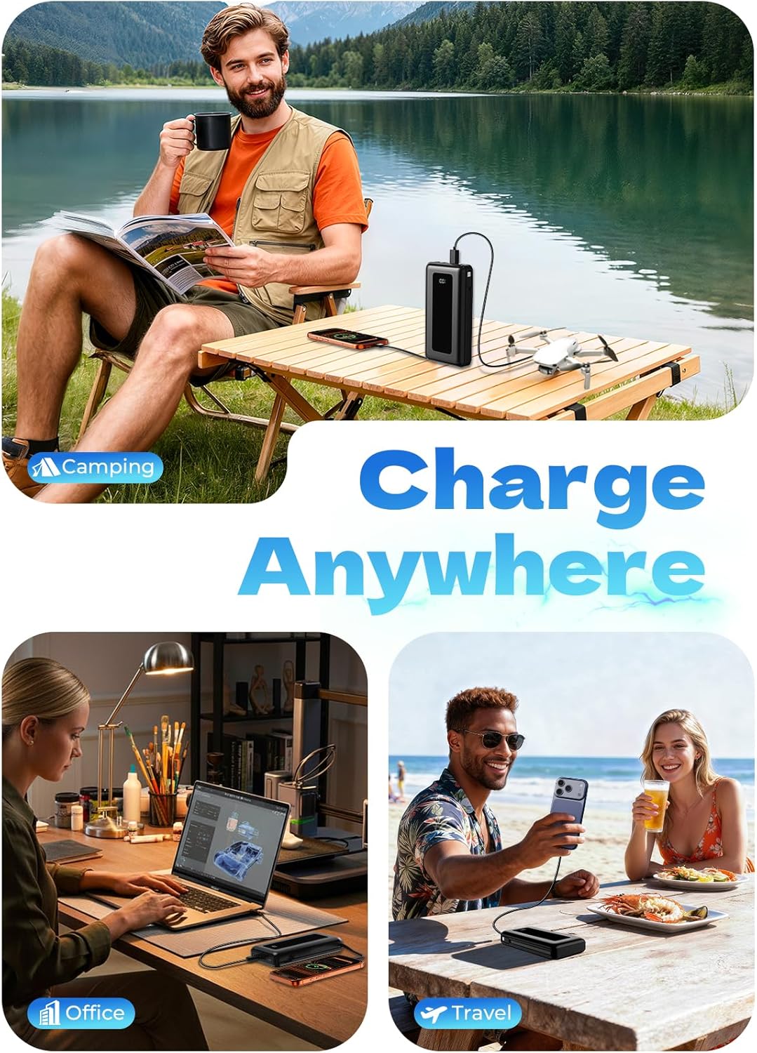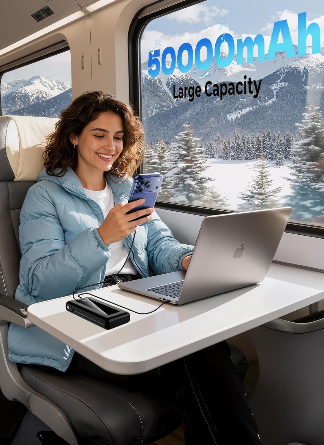 50000mAh Capacity Built for Extended Use:Engineered for reliability, this 50000mAh power bank delivers long-lasting power for travel, camping, and emergency situations. Its ultra-large capacity ensures you stay charged throughout your journeys—keeping your iPhone, iPad, and other devices powered whenever you need them. A premium portable charger designed to support days of uninterrupted use and dependable performance in any situation.