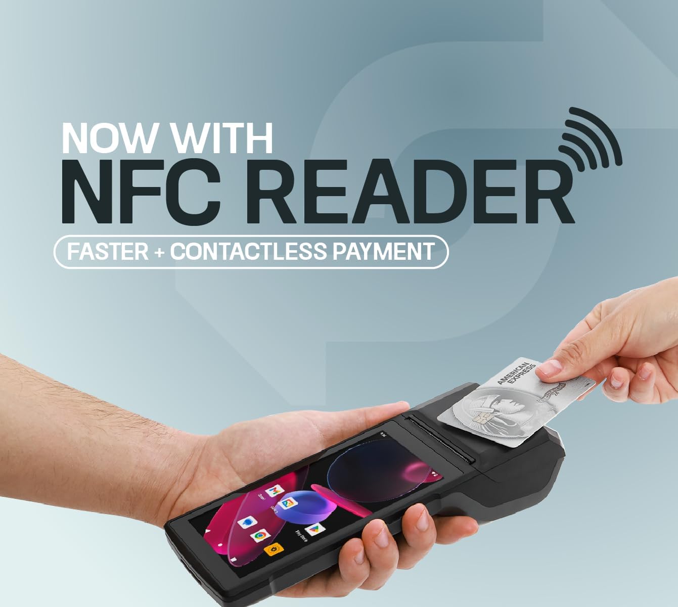 Accept NFC: Stay connected with reliable 4G LTE, Dual-Band WiFi, and Bluetooth 5.3 connectivity. Integrated NFC Reader allows for instant, secure contactless payments (tap-to-pay).