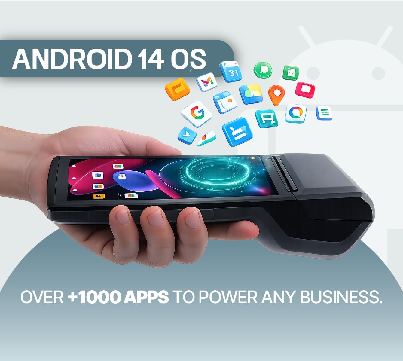 This Handheld Point of Sale Terminal is engineered for small business operations, retail environments, food service, and mobile vendors across the USA, prioritizing compact functionality and mobility. CORE PROCESSING & PERFORMANCE The terminal operates on the Android 14 operating system, utilizing an Octa-Core 2.0GHz processor for efficient transaction processing and data management. It includes 3GB of RAM and 32GB of ROM for reliable application handling and storage capacity. ALL-IN-ONE FUNCTIONALITY This device serves as a complete mobile workstation, featuring an integrated high-speed 58mm Thermal Receipt Printer for rapid issuance of receipts. It includes a built-in NFC Reader to facilitate secure contactless payment acceptance (tap-to-pay), and a versatile 5.0MP Rear Camera capable of instant barcode and QR code scanning. CONNECTIVITY AND RELIABILITY Connectivity options include seamless 4G LTE, Dual-Band WiFi, and Bluetooth 5.3. The device is powered by a long-lasting battery and supports USB-C Fast Charging, helping to ensure sustained operation during business hours. PRODUCT USE NOTE This POS solution is designed to be compatible with a wide range of third-party Point of Sale applications.