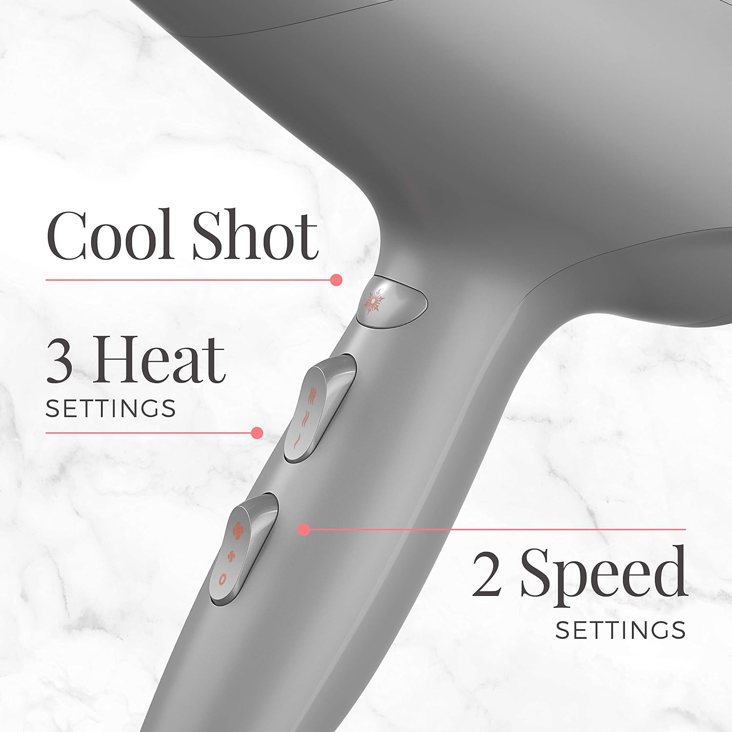 QUIET PRECISION & COOL SHOT: Customize with 3 heat and 2 speed settings. The cool shot locks in your style while cooling the dryer efficiently, preventing overheating and ensuring a dependable and quiet styling experience.