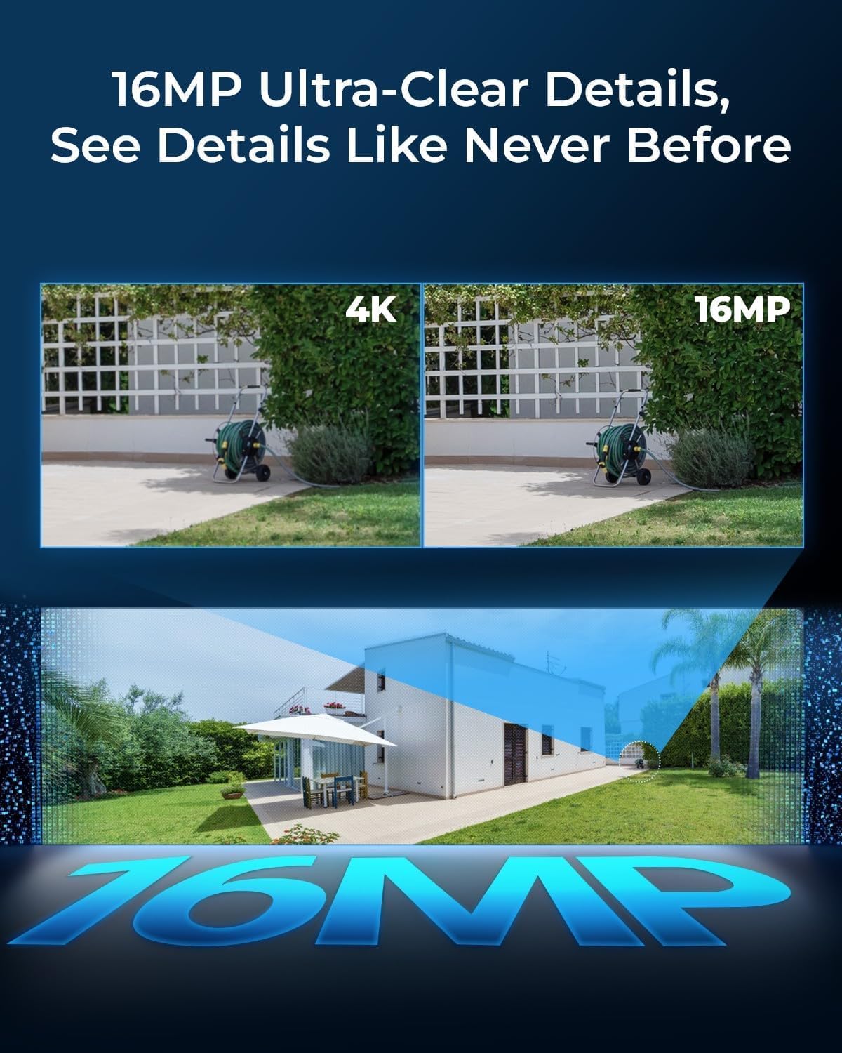 16MP UHD & COLOR NIGHT VISION: Featuring two 4K image sensors, this dual-lens camera brings 16 UHD clarity to you, ensuring no small detail goes unnoticed. The F1.6 super aperture and 1/2.7” CMOS sensor enable greater light intake, while 6x infrared LED lights unveil all night details up to 100ft.