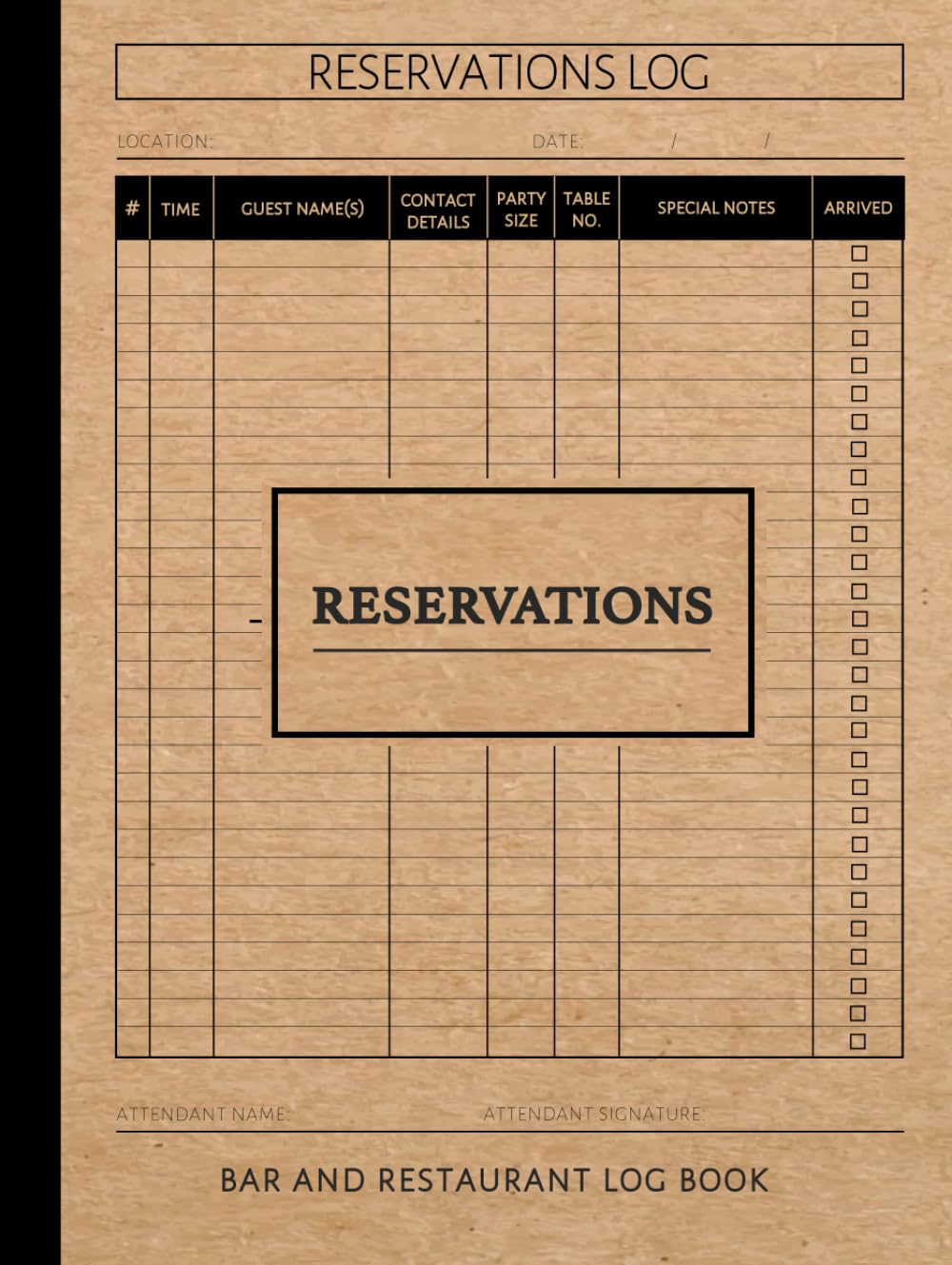 This Reservations Log Book provides the perfect solution to record, update, and track your guest arrivals Measuring 8.5 x 11 inches the Reservations Log Book is conveniently sized and simple enough for anyone to use.